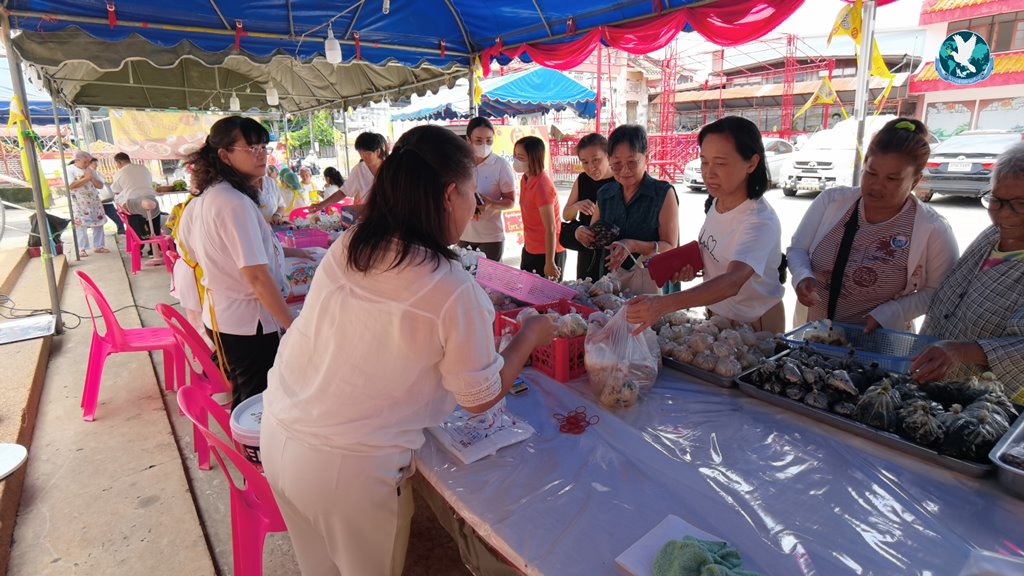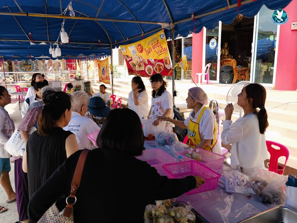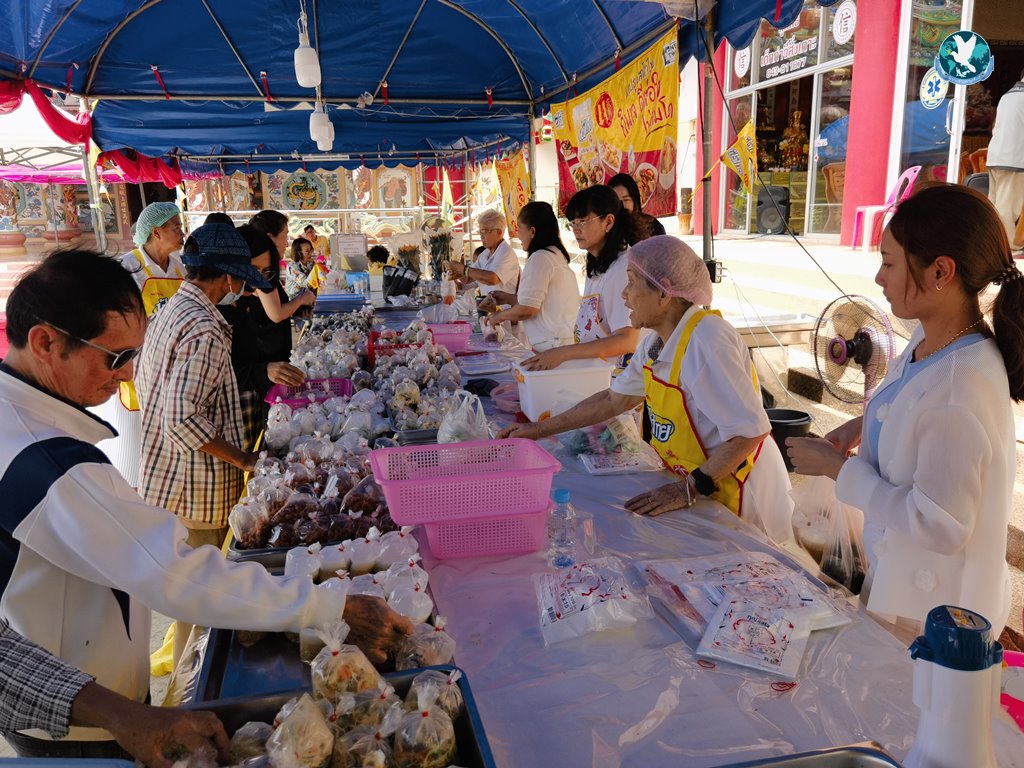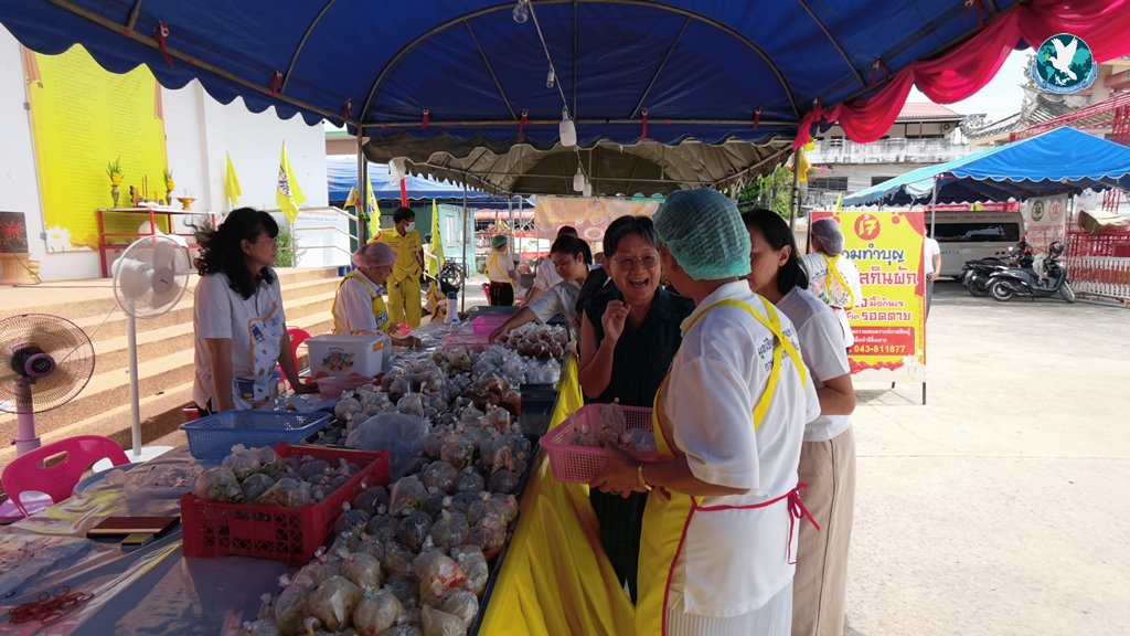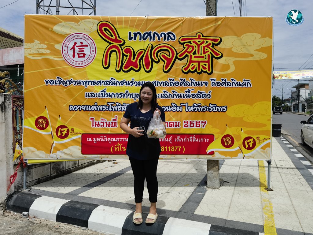ด้านคุณเสาวนีย์ มีระหงษ์ ได้เชิญชวนชาวกาฬสินธุ์ให้มาร่วมบุญในเทศกาลกินเจว่า “ตนเองล้างท้องตั้งแต่เมื่อวานแล้วเพื่อมาเข้าเทศกาลกินเจ โดยถือศีลกินเจมาเป็นประจำทุกปี พอดีอาม่าพากัน อาม่าบอกว่าถ้ารู้สึกไม่สบายเนื้อไม่สบายตัวให้ลองไปขอพรกับเจ้าแม่กวนอิมดู ว่าถ้าหายจากอาการเจ็บไข้ได้ป่วยแล้วเราจะทานเจถวายทุกปี ก็เลยลองทำดูก็โอเค จากที่มีอาการเจ็บไข้ได้ป่วยจากที่เราเจ็บแข้งเจ็บขาก็โอเคขึ้น จะว่าอุปมาอุปมัยก็ไม่ใช่ แต่รู้สึกว่าเราทำแล้วสบายใจก็เลยทำ จึงขอเรียนเชิญให้ทุกท่านมาทานอาหารเจร่วมกัน อาจจะเป็น 1 มื้อ 2 มื้อ 3 มื้อ หรือทานสักวันสองวัน เพื่อที่จะทำบุญเพื่อให้สัตว์ที่จะถูกทำร้ายถูกฆ่าเพื่อมาเป็นอาหารของเราได้มีชีวิตรอด “หนึ่งมื้อกินเจ หมื่นชีวิตรอดตาย”