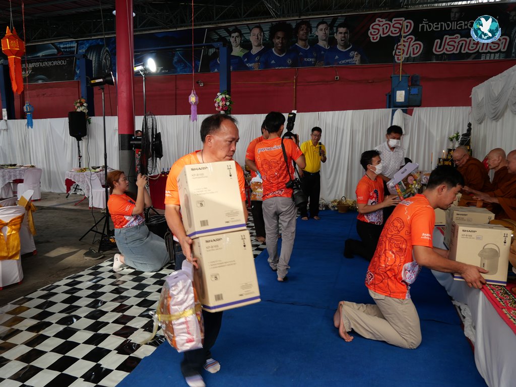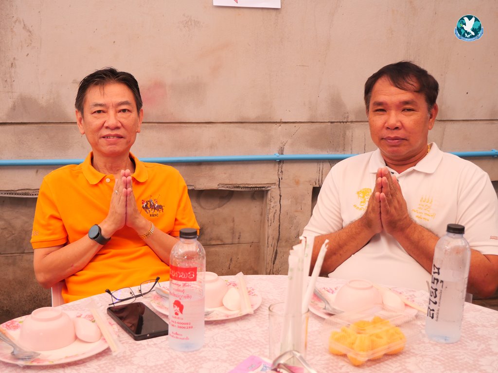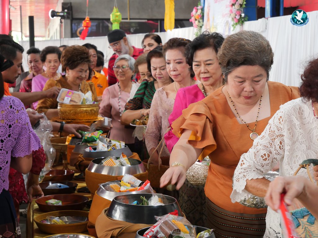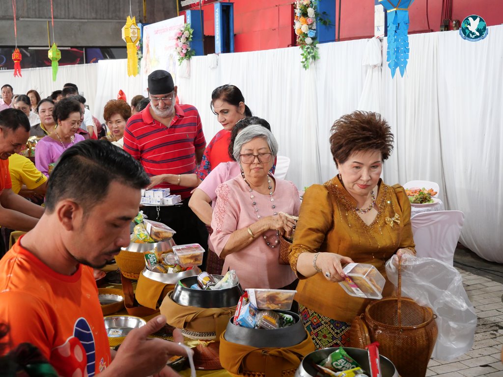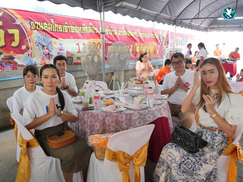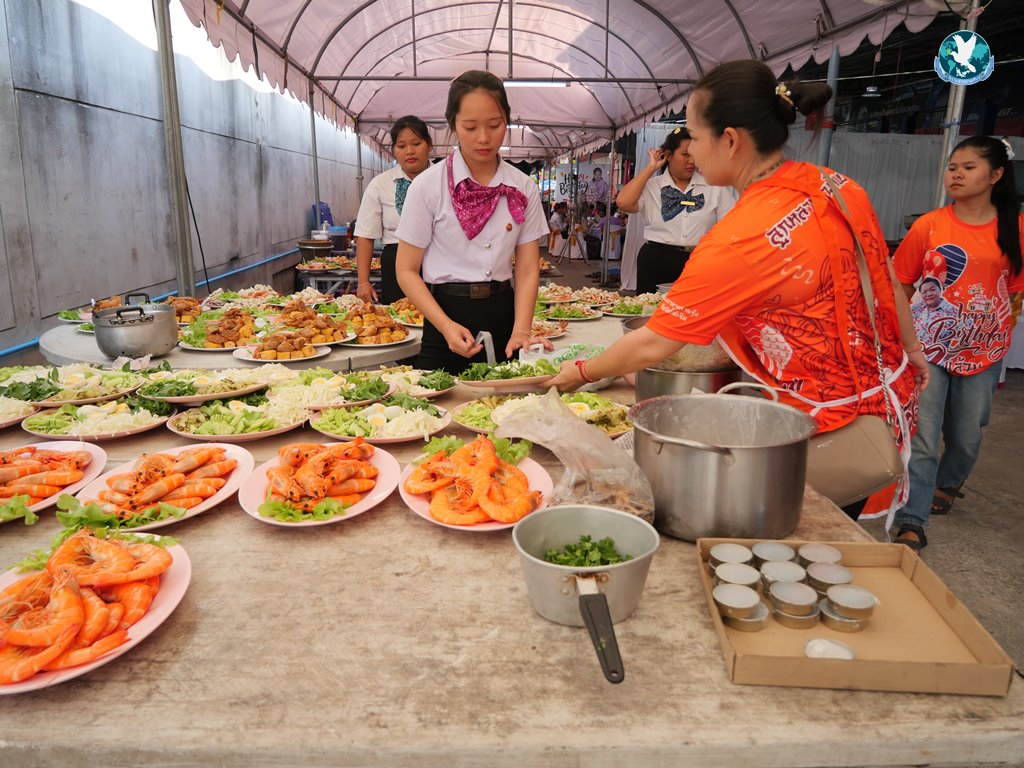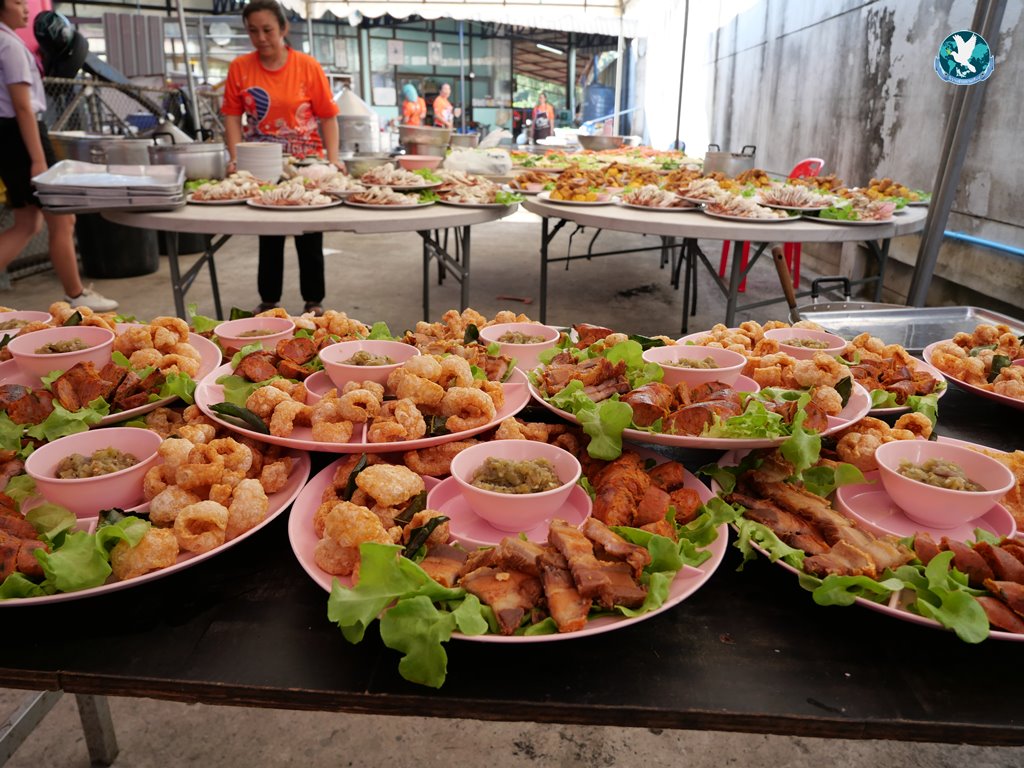 สีสันแรกของวันนี้ เนื่องจากอาม๋าแช เป็นเจ้าของห้องอาหารชื่อดังของจังหวัดกาฬสินธุ์ ที่รับจัดโต๊ะจีนตามงานพิธีต่าง ๆ มากว่า 40 ปี วันนี้เป็นวันเกิดของเจ้าของห้องอาหารเอง จึงจัดโต๊ะจีนที่คัดสรรวัตถุดิบอย่างดีมาเสริฟถวายภัตตาหารแด่พระภิกษุสงฆ์และแขกผู้มีเกียรติที่เข้าร่วมงาน ไม่ว่าจะเป็นเมนู ปลาหิมะนึ่งซีอิ้ว, ซุปหูฉลามน้ำแดงปู, กุ้งนึ่งน้ำจิ้มซีฟู้ด, ปูม้านึ่งแกะ, เป็ดอบน้ำผึ้ง, เต้าหู้+กวงเจียงเผือกทอด, ขนมจีนน้ำยาปูก้อน, ปลากะพงทอดลุยสวน และออเดริฟ (แคปหมู+หมูกรอบ+น้ำพริก+ส้มตำ) ..ดูไปกลืนน้ำลายไป.. ไม่เชื่อก็ดูเลยว่าอร่อยจนแขกที่เข้าร่วมงานขอห่อกลับบ้านด้วย