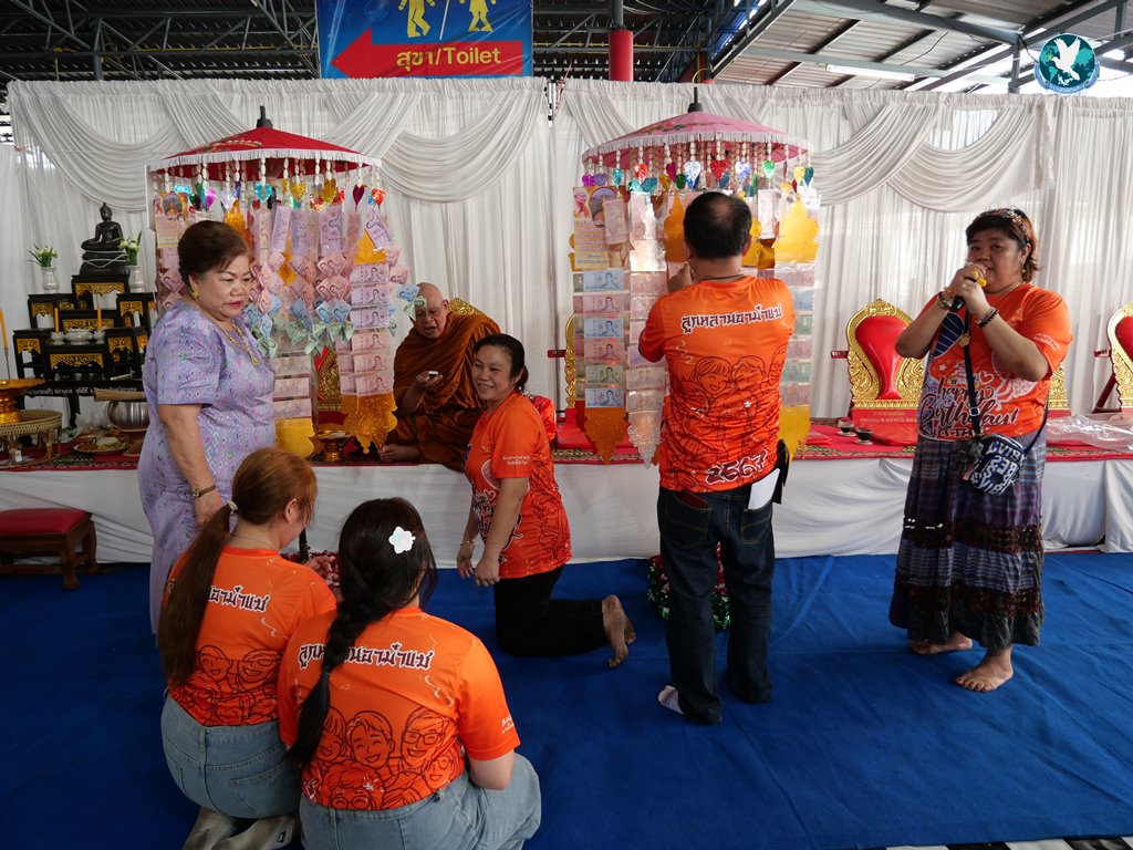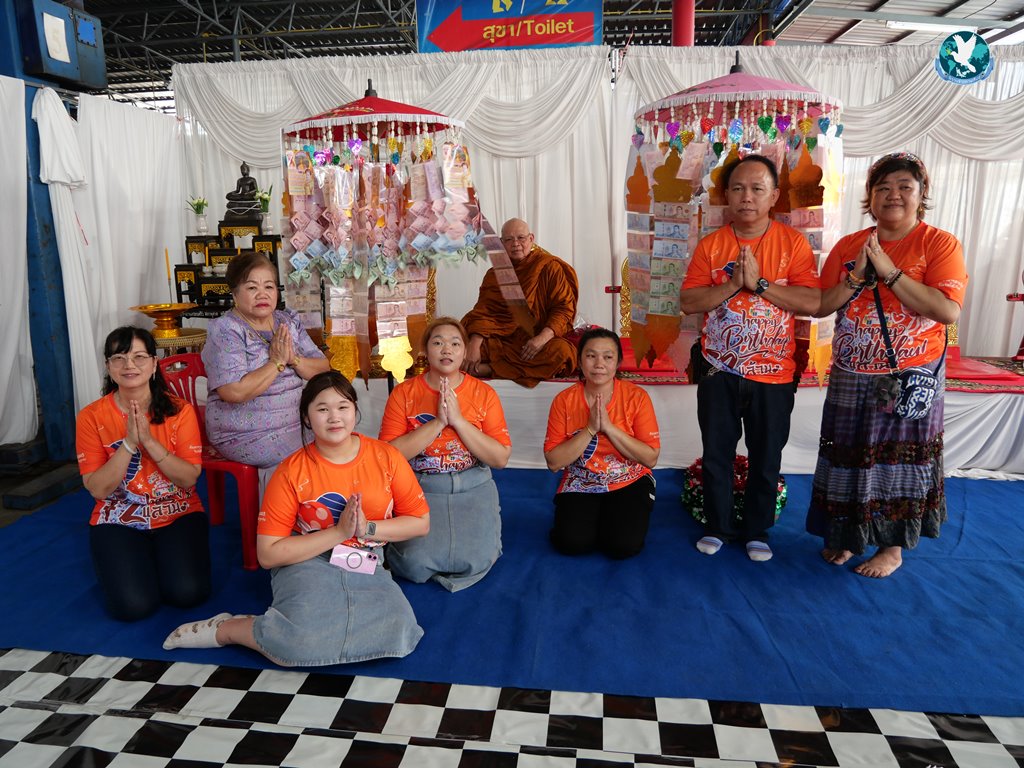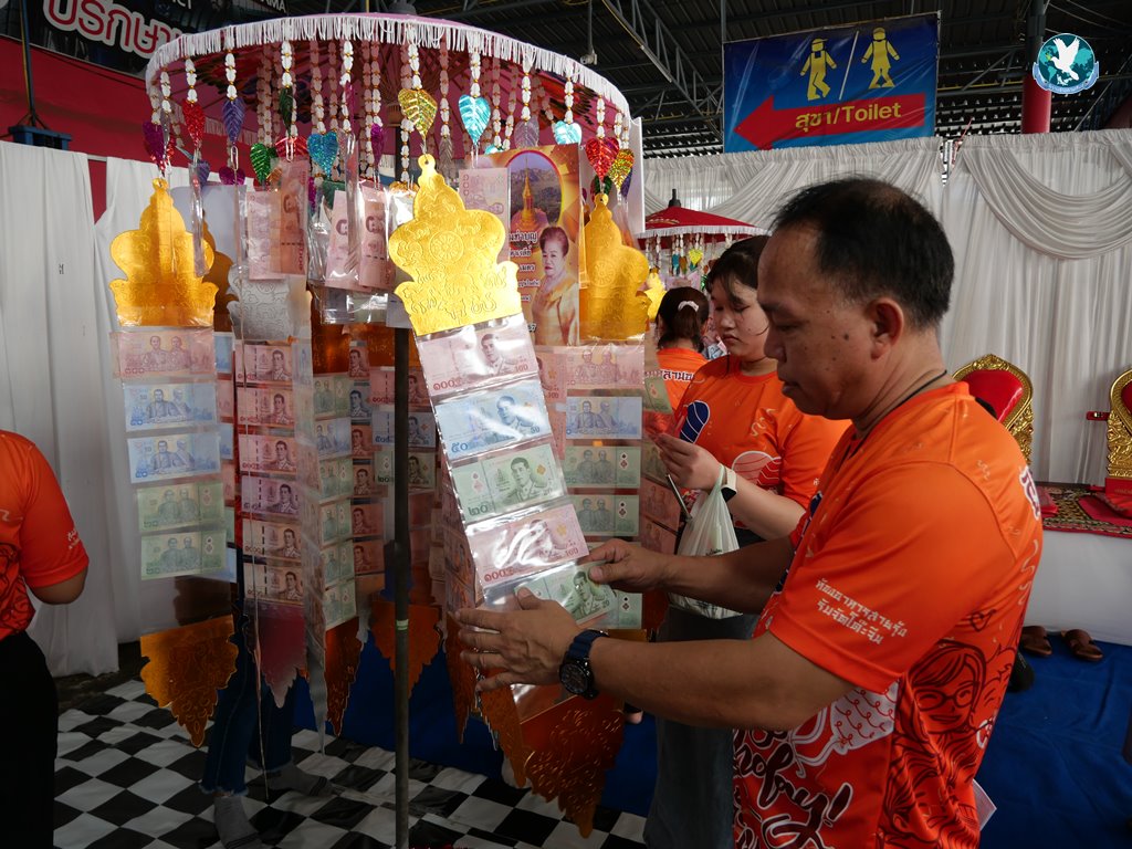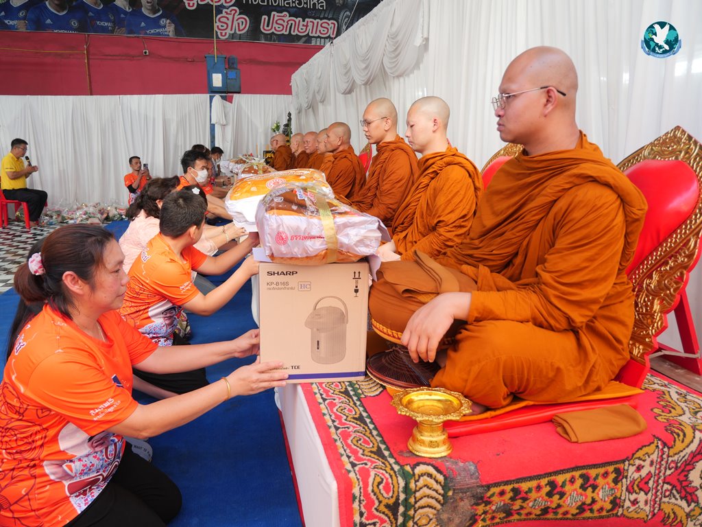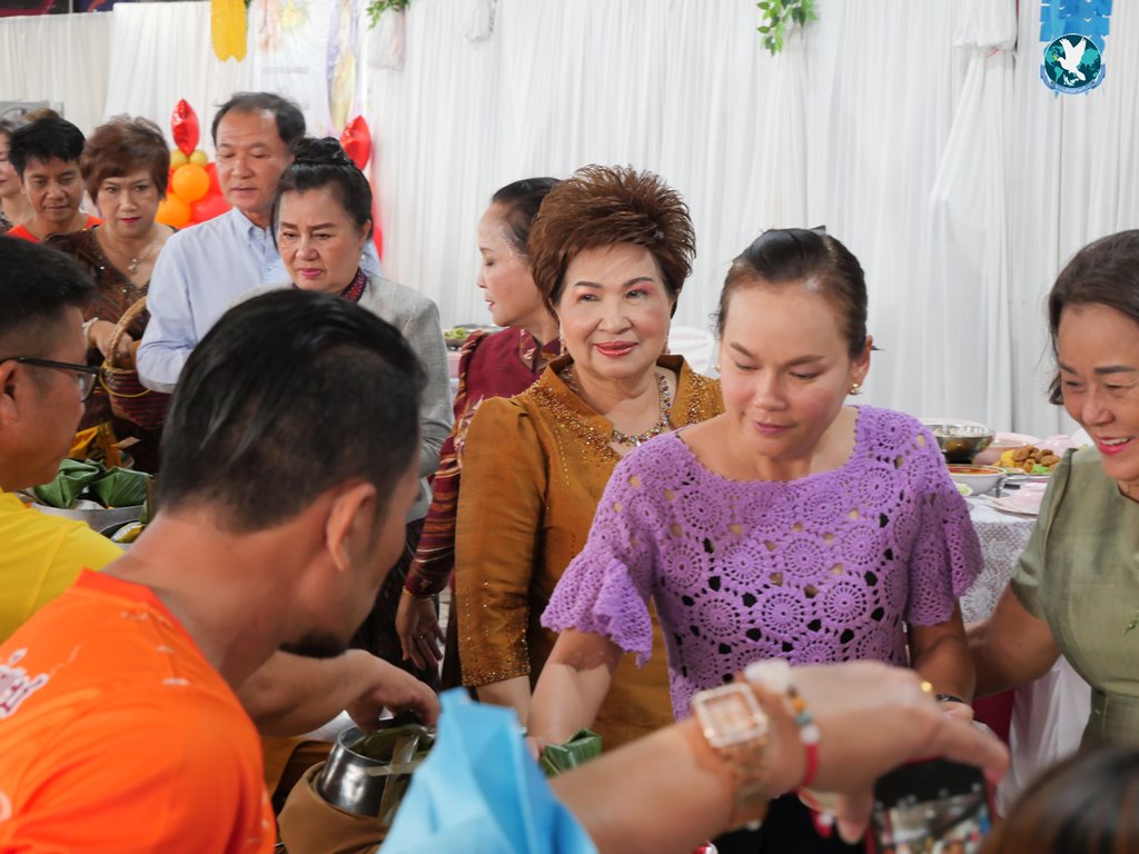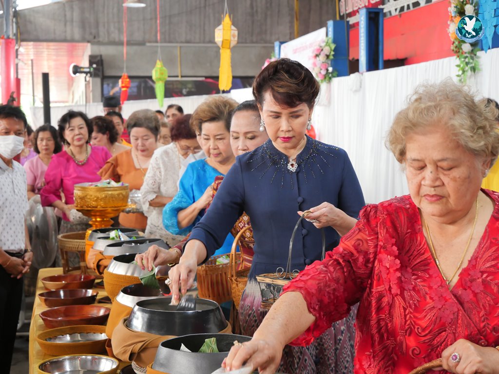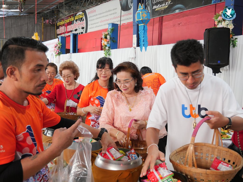 สีสันแรกของวันนี้ เนื่องจากอาม๋าแช เป็นเจ้าของห้องอาหารชื่อดังของจังหวัดกาฬสินธุ์ ที่รับจัดโต๊ะจีนตามงานพิธีต่าง ๆ มากว่า 40 ปี วันนี้เป็นวันเกิดของเจ้าของห้องอาหารเอง จึงจัดโต๊ะจีนที่คัดสรรวัตถุดิบอย่างดีมาเสริฟถวายภัตตาหารแด่พระภิกษุสงฆ์และแขกผู้มีเกียรติที่เข้าร่วมงาน ไม่ว่าจะเป็นเมนู ปลาหิมะนึ่งซีอิ้ว, ซุปหูฉลามน้ำแดงปู, กุ้งนึ่งน้ำจิ้มซีฟู้ด, ปูม้านึ่งแกะ, เป็ดอบน้ำผึ้ง, เต้าหู้+กวงเจียงเผือกทอด, ขนมจีนน้ำยาปูก้อน, ปลากะพงทอดลุยสวน และออเดริฟ (แคปหมู+หมูกรอบ+น้ำพริก+ส้มตำ) ..ดูไปกลืนน้ำลายไป.. ไม่เชื่อก็ดูเลยว่าอร่อยจนแขกที่เข้าร่วมงานขอห่อกลับบ้านด้วย