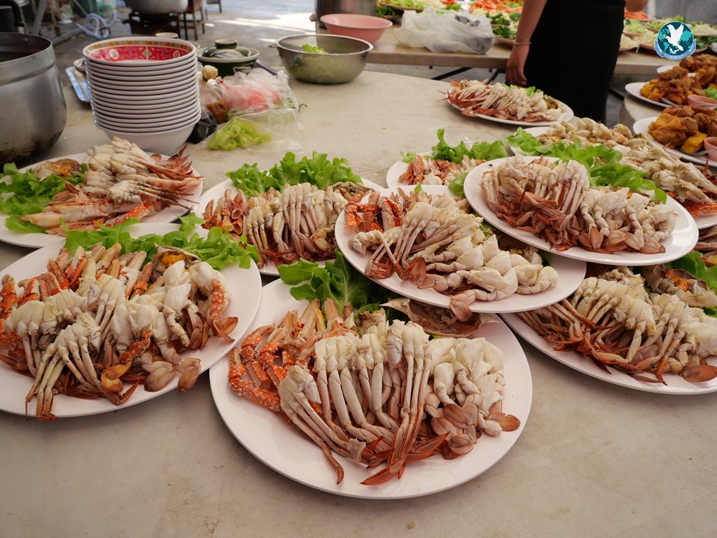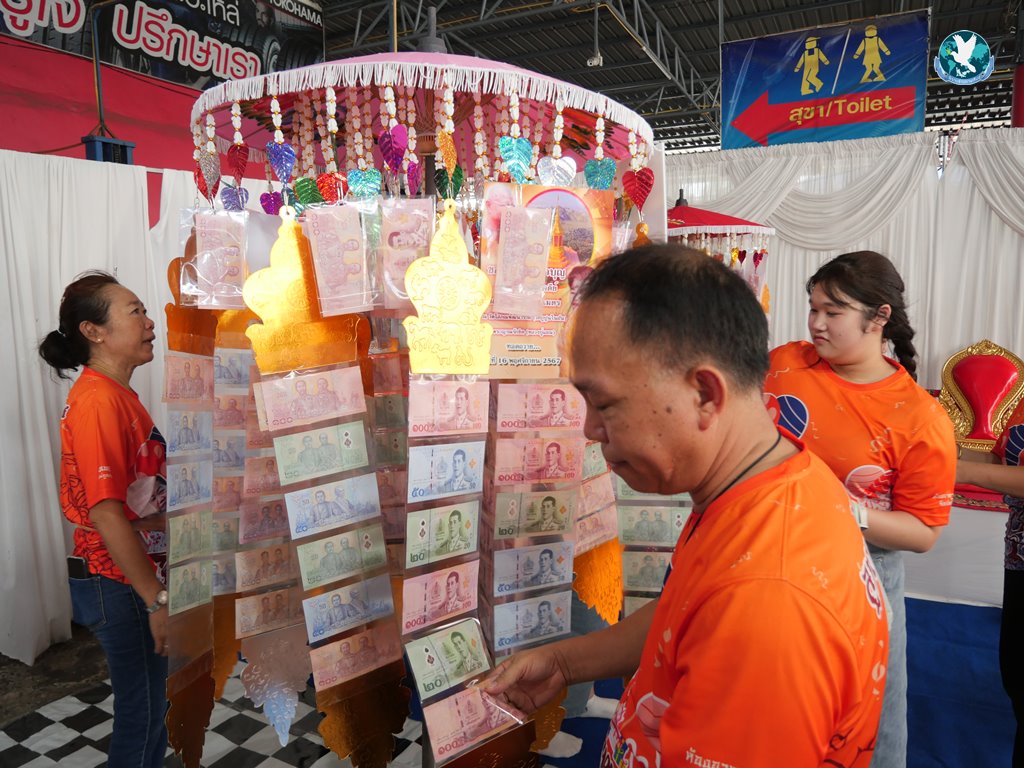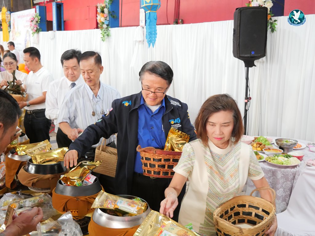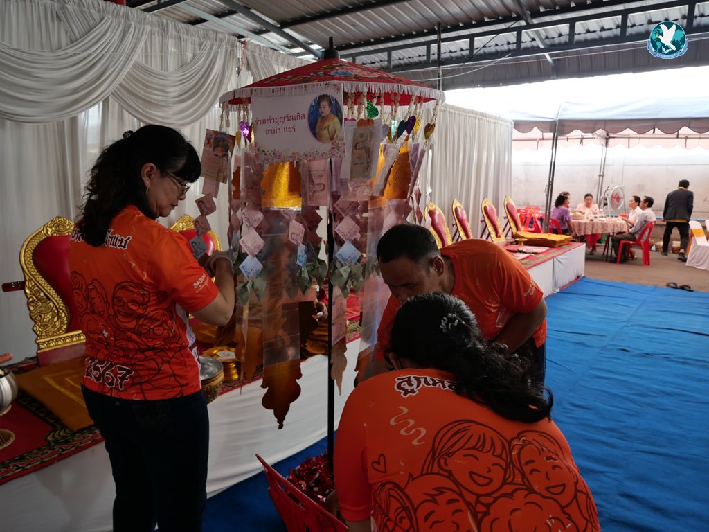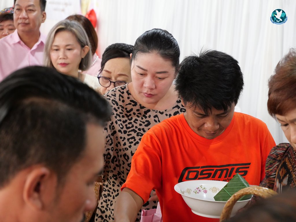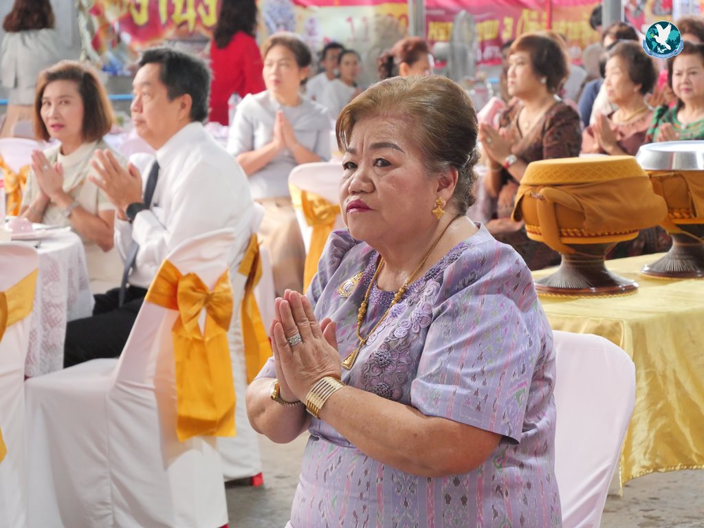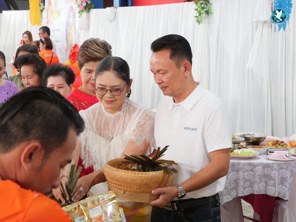 สีสันแรกของวันนี้ เนื่องจากอาม๋าแช เป็นเจ้าของห้องอาหารชื่อดังของจังหวัดกาฬสินธุ์ ที่รับจัดโต๊ะจีนตามงานพิธีต่าง ๆ มากว่า 40 ปี วันนี้เป็นวันเกิดของเจ้าของห้องอาหารเอง จึงจัดโต๊ะจีนที่คัดสรรวัตถุดิบอย่างดีมาเสริฟถวายภัตตาหารแด่พระภิกษุสงฆ์และแขกผู้มีเกียรติที่เข้าร่วมงาน ไม่ว่าจะเป็นเมนู ปลาหิมะนึ่งซีอิ้ว, ซุปหูฉลามน้ำแดงปู, กุ้งนึ่งน้ำจิ้มซีฟู้ด, ปูม้านึ่งแกะ, เป็ดอบน้ำผึ้ง, เต้าหู้+กวงเจียงเผือกทอด, ขนมจีนน้ำยาปูก้อน, ปลากะพงทอดลุยสวน และออเดริฟ (แคปหมู+หมูกรอบ+น้ำพริก+ส้มตำ) ..ดูไปกลืนน้ำลายไป.. ไม่เชื่อก็ดูเลยว่าอร่อยจนแขกที่เข้าร่วมงานขอห่อกลับบ้านด้วย
