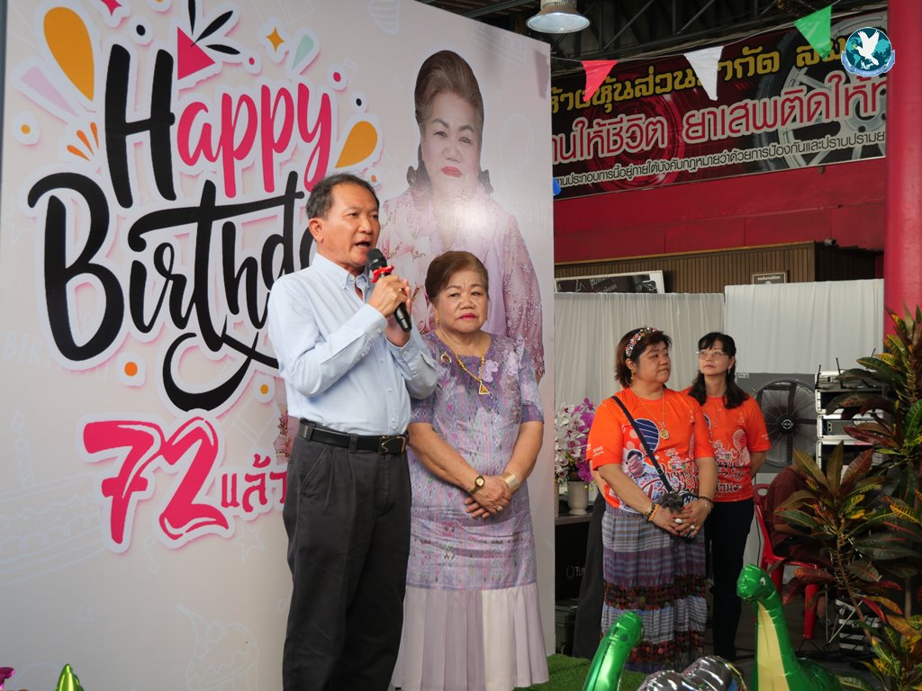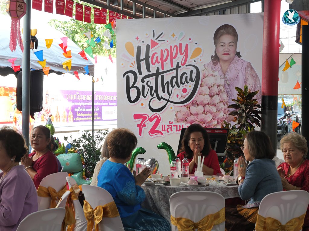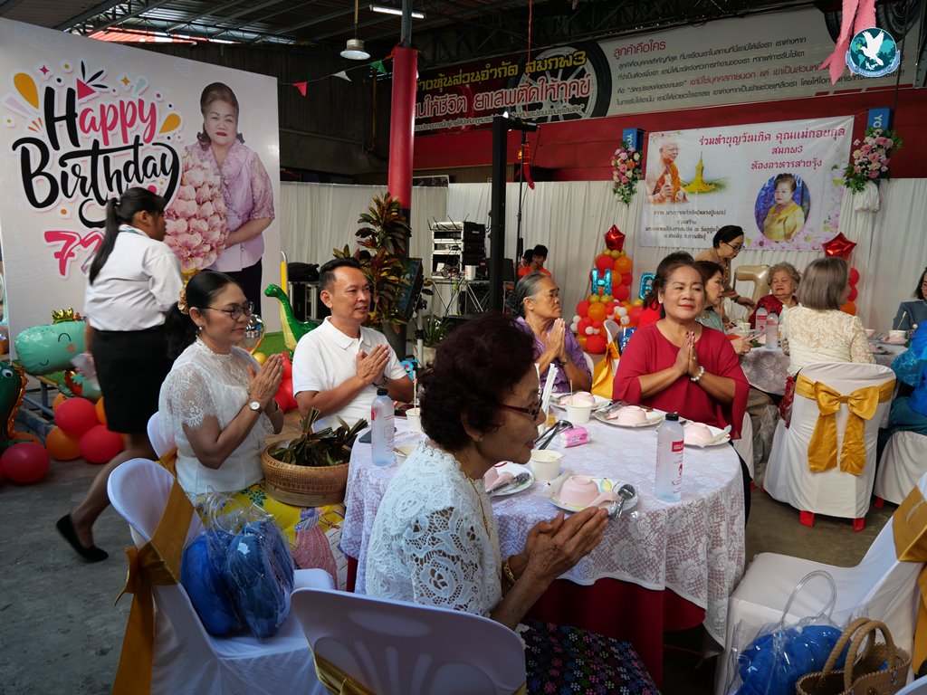 สีสันต่อมาเป็นการเซอร์ไพรส์วันเกิด โดยมี พันตำรวจเอก ทวี สอดส่อง รัฐมนตรีว่าการกระทรวงยุติธรรม ได้ Video Call ผ่าน Line มาอวยพรวันเกิดให้อาม๋าแช โดยอาม๋าแช เป็นคณะกรรมการสงเคราะห์เด็กและเยาวชน สำหรับสถานพินิจฯ จ.กาฬสินธุ์ และอีกหลายตำแหน่งที่ช่วยเหลือสังคมมาโดยตลอด โดยทาง รมว.ยุติธรรมฯ กล่าวอวยพรว่า “ในฐานะที่คุณแม่ทั้งสองเป็นคนดีศรีสังคม เป็นผู้ที่ทำประโยชน์ โดยเฉพาะมีบุญคุณกับทางกระทรวงยุติธรรมเป็นอย่างยิ่ง ผมในฐานะของรัฐมนตรีว่าการกระทรวงยุติธรรมส่วนหนึ่ง และในส่วนหนึ่งก็ในฐานะที่เคารพกับคุณแม่สิริกาญจน์กับคุณแม่กอบกุล ก็ขออวยพรเนื่องในวันคล้ายวันเกิด ขอให้ทั้งสองจงมีสุขภาพแข็งแรง มีความสุขกาย สุขใจ สมหวัง และโชคดี และสำคัญอย่างยิ่งก็คือขอให้ชีวิตมีแต่คนรัก โดยเฉพาะอย่างยิ่งสิ่งที่ท่านทั้งสองได้ทำประโยชน์ในการดูแลเด็กและเยาวชน ซึ่งถือว่าเป็นความมั่นคงของชาติ และเป็นอนาคตของชาติ ดังนั้นในวันคล้ายวันเกิด และมีพี่น้องหลายคนที่มาร่วมงานในวันนี้ เราก็น้อมใจร่วมให้ทั้งสองท่านมีความสุข ขอขอบคุณมากครับ”..แหม๋ท่าน รมว. และคุณแม่ๆ ช่างทันสมัยใช้ไอทีเก่งกันจริงๆ อวยพรวันเกิดกันผ่าน Line เลยทีเดียว