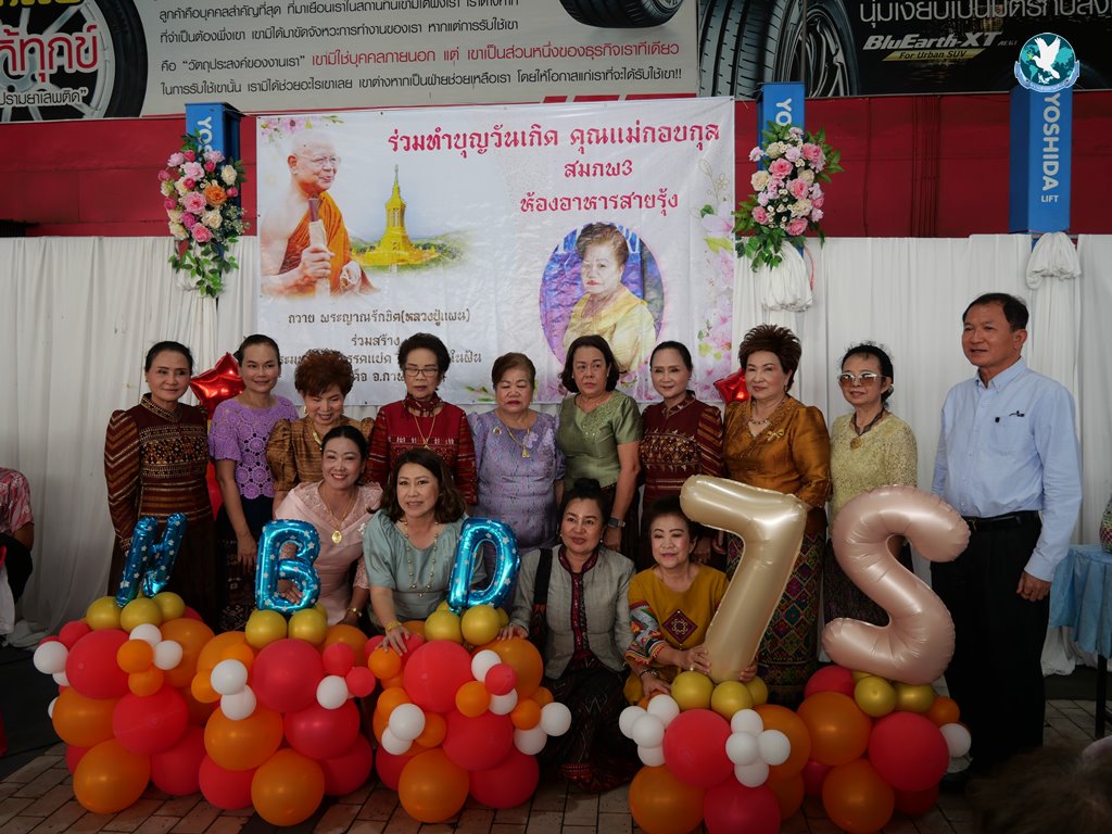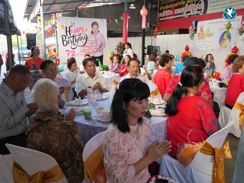 กาฬสินธุ์ วันนี้ (16 พ.ย. 2567) ที่ ห้องอาหารสายรุ้ง ภายใน หจก.สมภพ3 อ.เมือง จ.กาฬสินธุ์ เป็นวันดีเป็นวันเกิดของอาม๋าแช คุณแม่กอบกุล จันทร์เล็งโพธิ์ หรือที่คนกาฬสินธุ์รู้จักกันในชื่อ “เจ๊แชร์” ในโอกาสครบรอบ 72 ปี ผู้ที่เป็นผู้ให้ มอบทุนการศึกษา ให้ความช่วยเหลือผู้ยากไร้ และช่วยเหลือพระพุทธศาสนามาโดยตลอด โดยทางเจ้าของวันเกิดขออนุญาตไม่รับของขวัญและกระเช้า แต่เชิญชวนผู้เข้าร่วมงานร่วมทำบุญในวันเกิด ทำบุญตักบาตรแด่พระภิกษุสงฆ์ จำนวน 9 รูป และได้เชิญชวนร่วมกันบริจาคเงินร่วมสร้างพระมหาเจดีย์มรรค 8 ความสูง 88 เมตร ณ วัดโสภณพัฒนาราม (ภูปูนในฝัน) อ.สมเด็จ จ.กาฬสินธุ์ พระญาณรักขิต (หลวงปู่แผน) และร่วมลุ้นรับรางวัลเหรียญเสมา อายุวัฒนมงคล 72 ปี โดยมีแขกผู้มีเกียรติเข้าร่วมงานเป็นจำนวนมาก