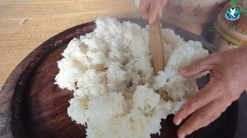 ส่วนกลเม็ดเคล็ดไม่ลับที่คนอีสานได้ใช้ในการเก็บรักษาข้าวที่เพิ่งนึ่ง (หุง) สุกใหม่ๆ ให้เก็บไว้ได้รับประทานอย่างดีตลอดทั้งวัน เริ่มจากการนำข้าวที่นึ่งสุกใหม่ๆ มาเทลงในโบมสายข้าว (กระโบม) เพื่อให้ข้าวที่อยู่ก้นหวดนึ่งข้าวที่มีความชื้นมากกว่ามาคละกันออก เพื่อกระจายข้าวชื้นของข้าวออก แล้วนำไปใส่ในกระติ๊บข้าวเหนียว โดยมีผ้าขาวบางที่นำมารองไว้อีกชั้น เพื่อป้องกันไม่ให้เศษเยื่อไม้ของกระติ๊บข้าวมาติดในเนื้อข้าวและยังเป็นการป้องกันมดและแมลงที่อาจจะไต่เข้าไปในกระติ๊บข้าวได้อีกด้วย ถือเป็นภูมิปัญญาชาวบ้านที่พัฒนาการเก็บรักษาอาหารให้ได้นานที่สุด บางคนอาจจะใช้กระติกน้ำแข็งใส่เก็บข้าวเพื่อรักษาความร้อนก็มี
