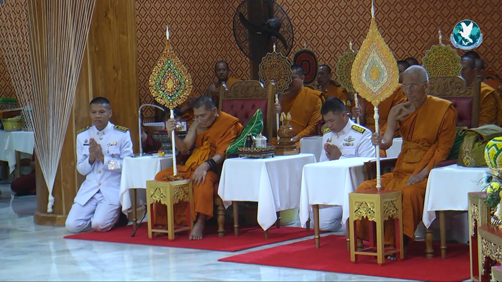 กาฬสินธุ์ กรมวังผู้ใหญ่ประจำพระองค์ 904 เชิญผ้าไตร พร้อมเครื่องไทยธรรม และเครื่องเขียนพระราชทานไปถวายพระราชวัชรธรรมโสภณ เจ้าอาวาสวัดพระธาตุหมื่นหิน