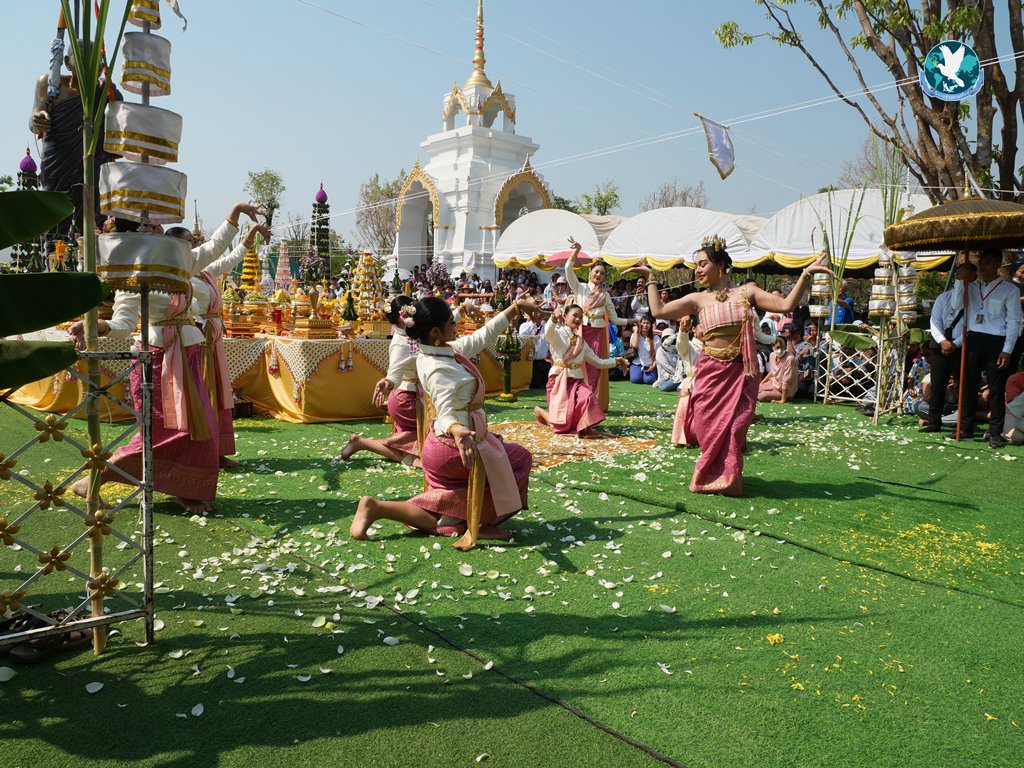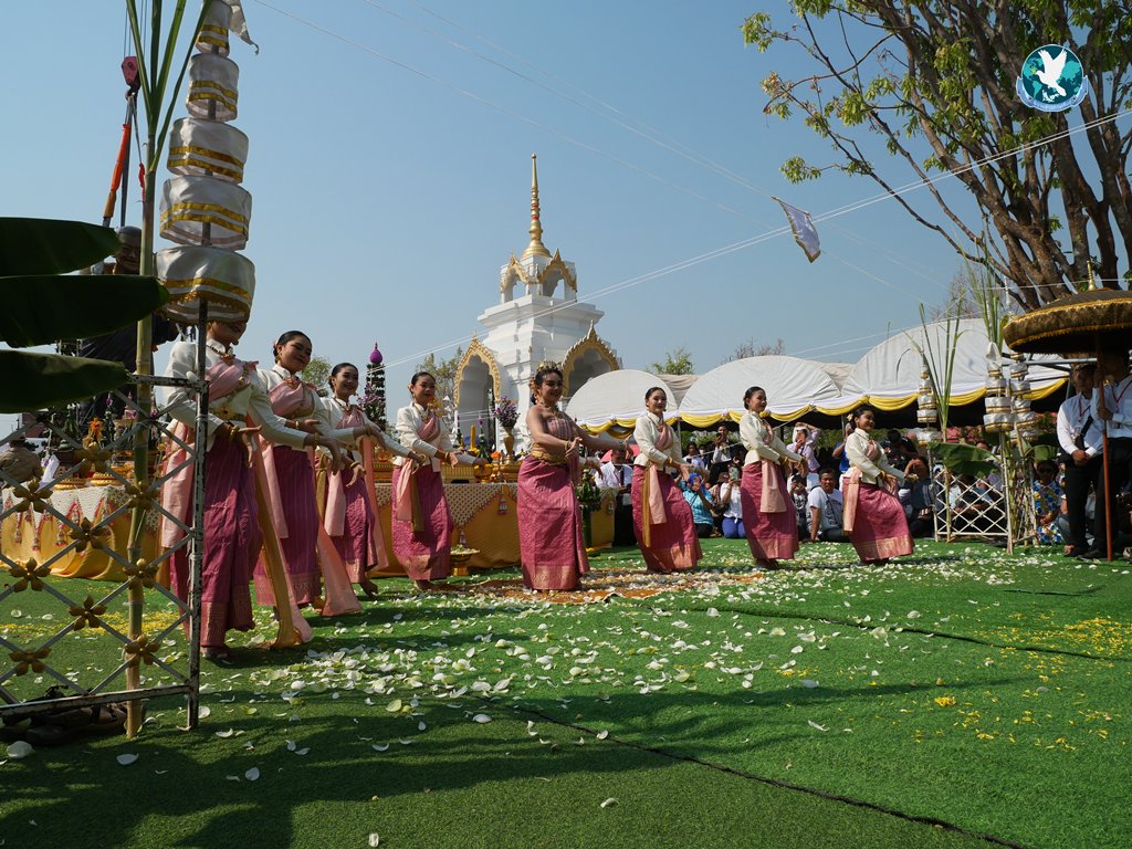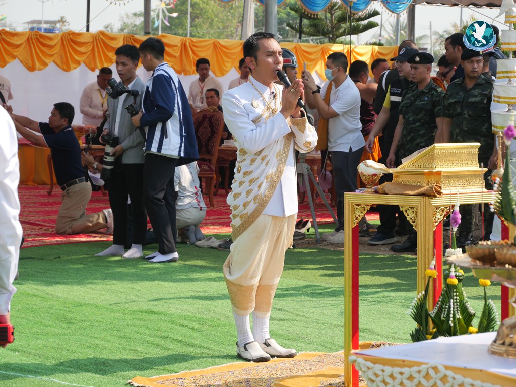 พิธีเริ่มจากเวลา 08.39 น. ที่ธรรมอุทยานหลวงปู่ศิลา สิริจนฺโท ได้จัดพิธีบวงสรวง (พิธีพราหมณ์) ในพิธียกรูปเหมือนยืนองค์ใหญ่พระราชวัชรธรรมโสภณ (หลวงปู่ศิลา สิริจนฺโท ป.) หลังจากนั้นเป็นการรำบวงสรวงจากคณะนางรำ 2 ชุดการแสดงถวายองค์หลวงปู่ฯ