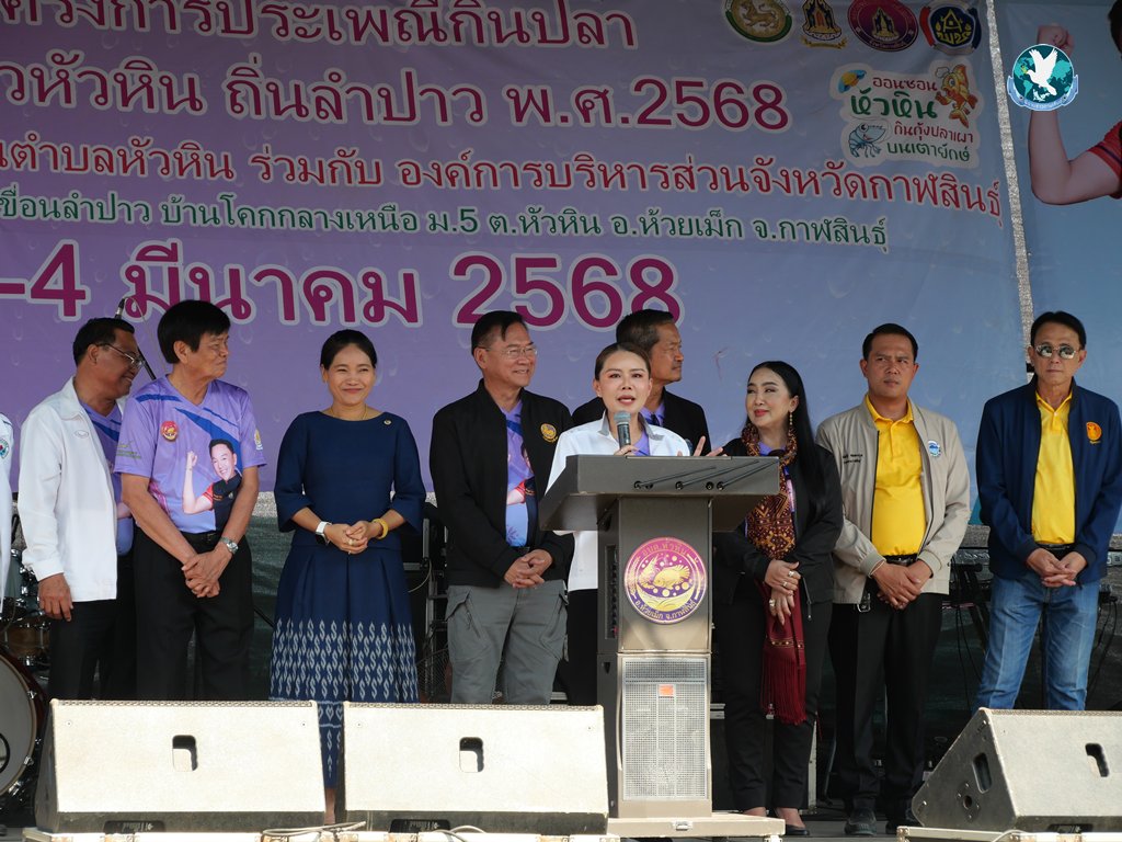 นายกโก้ กล่าวอีกว่า “องค์การบริหารส่วนตำบลหัวหินได้เล็งเห็นความสำคัญของการประชาสัมพันธ์อย่างกว้างขวางและต่อเนื่อง ของการประกอบอาชีพเลี้ยงปลานิลในกระชัง การเลี้ยงกุ้งก้ามกราม การแปรรูปผลิตภัณฑ์จากปลาและกุ้ง เพื่อลดรายจ่าย เพิ่มรายได้ให้กับครอบครัว ของประชาชนในพื้นที่ จึงได้มีการจัดงาน โครงการ ประเพณีกินปลา พาเที่ยวหัวหิน ถิ่นลำปาว ประจำปี พ.ศ. 2568 ในระหว่างวันที่ 3-4 มีนาคม พ.ศ. 2568 บริเวณท้ายเขื่อนลำปาว ณ บ้านโคกกลางเหนือ หมู่ที่ 5 ตำบลหัวหินในวันนี้ โดยการจัดงานโครงการครั้งนี้มีวัตถุประสงค์ เพื่อส่งเสริมและสนับสนุนกลุ่มเลี้ยงปลาในกระชัง กลุ่มเลี้ยงกุ้งและกลุ่มอาชีพอื่น ๆ ของตำบลหัวหินให้รู้จักกันอย่างกว้างขวาง อีกทั้งยังเป็นการสร้างรายได้ให้กับชุมชนและกลุ่มอาชีพต่าง ๆ และสร้างขวัญและกำลังใจของกลุ่มเลี้ยงปลาในกระชัง กลุ่มเลี้ยงกุ้ง กลุ่มอาชีพอื่น ๆ ในตำบลหัวหิน ส่งเสริมและสนับสนุนให้เกิดแหล่งท่องเที่ยวในตำบลหัวหินสร้างรายได้ที่ยั่งยืน และสืบสานวิถีชีวิตความเป็นอยู่ของคนในชุมชนท้ายเขื่อนลำปาว กระตุ้นเศรษฐกิจเพิ่มรายได้ให้ประชาชนในตำบลหัวหินและตำบลใกล้เคียง และที่สำคัญยังเป็นการสร้างความสามัคคีในชุมชนด้วย