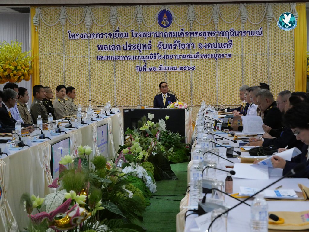วันนี้ (12 มีนาคม 2568) พลเอกประยุทธ์ จันทร์โอชา องคมนตรี ในฐานะรองประธานกรรมการมูลนิธิโรงพยาบาลสมเด็จพระยุพราช พร้อมด้วย นายสมศักดิ์ เทพสุทิน รัฐมนตรีว่าการกระทรวงสาธารณสุข นพ.โอภาส การย์กวินพงศ์ ปลัดกระทรวงสาธารณสุข นพ.เอกชัย เพียรศรีวัชรา ผู้ตรวจราชการกระทรวงสาธารณสุข เขตสุขภาพที่ 7 คณะผู้บริหาร และหน่วยงานที่เกี่ยวข้อง ลงพื้นที่ติดตามการดำเนินงานของ โรงพยาบาลสมเด็จพระยุพราชกุฉินารายณ์ จังหวัดกาฬสินธุ์ พร้อมเยี่ยมให้กำลังใจบุคลากรผู้ปฏิบัติงาน มอบประกาศเกียรติคุณผู้ทำคุณประโยชน์ให้แก่โรงพยาบาล มอบถุงของขวัญพระราชทานให้กับผู้ป่วย และเปิดห้องผ่าตัด อาคารผ่าตัดเฉลิมพระเกียรติ 72 พรรษา โดยมีนายสนั่น พงษ์อักษร ผู้ว่าราชการจังหวัดกาฬสินธุ์ พร้อมด้วย นายสงกรานต์ เข็มศิริ ผู้พิพากษาหัวหน้าศาลจังหวัดกาฬสินธุ์, พล.ต.ต.ศิรสัณห์ เยื้อนสงวนชัย ผบก.ภ.จว.กาฬสินธุ์, นางเฉลิมขวัญ หล่อตระกูล นายกองค์การบริหารส่วนจังหวัดกาฬสินธุ์, นายธนภัทร ณ ระนอง นายนพดล จอมเพชร นายผดุงศักดิ์ อิ่มเอิบ รองผู้ว่าราชการจังหวัดกาฬสินธุ์ นายสันติ จัตุพันธ์ ปลัดจังหวัดกาฬสินธุ์ นำหัวหน้าส่วนราชการ จิตอาสาพระราชทานให้การต้อนรับ โดย นพ.สิริชัย นามทรรศนีย์ ผู้อำนวยการโรงพยาบาลสมเด็จพระยุพราชกุฉินารายณ์ เป็นผู้นำเสนอผลการดำเนินงานโรงพยาบาลฯ และมูลนิธิฯ สาขากุฉินารายณ์ แก่คณะตรวจเยี่ยม