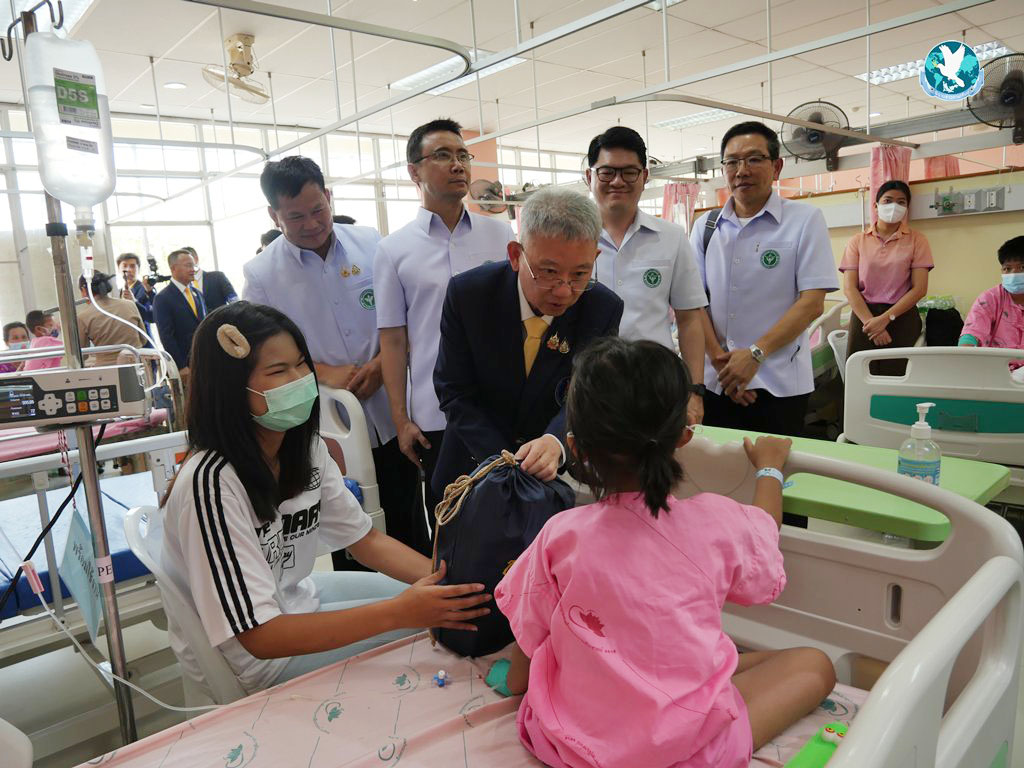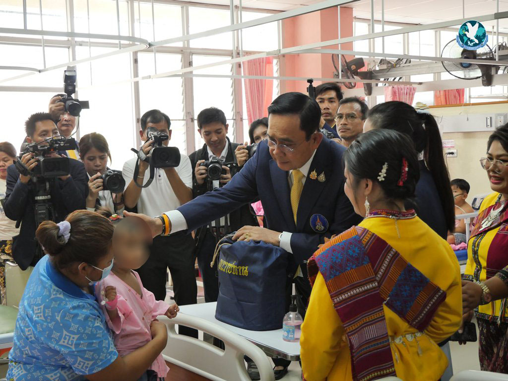 ต่อมา พลเอกประยุทธฯ ประธานกรรมการตรวจเยี่ยมโรงพยาบาลสมเด็จพระยุพราชฯ ได้ทำพิธีเปิดแพรคลุมป้ายอาคารห้องผ่าตัด หลังจากนั้นคณะได้ไปยังอาคารผู้ป่วยใน กุมารเวชกรรม เพื่อมอบถุงพระราชทาน มูลนิธิโรงพยาบาลสมเด็จพระยุพราช แก่ผู้ป่วย จำนวน 20 ราย โดยมีคณะกรรมการมูลนิธิโรงพยาบาลสมเด็จพระยุพราชพาเยี่ยมชมโรงพยาบาล