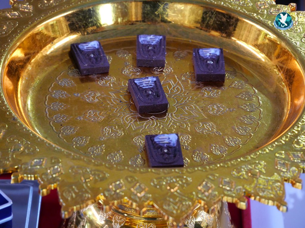 ช่วงบ่าย ก่อนทำพิธีพุทธาภิเษกพลีมวลสาร ได้มีการเปิดประมูลเหรียญสมเด็จพระุทธเจ้า 5 พระองค์ จำนวน 5 เหรียญ ที่หลวงปู่ศิลา สิริจันโท ท่านได้ปั๊มมือและจารเหรียญทุกเหรียญ เหรียญโค๊ต 1 คุณ เตยพนมไพร ประมูลได้ที่ 100,000 บาท, เหรียญโค้ต 10 คุณทัพทิม ประมูลได้ที่ 100,000 บาท, โค๊ต 18 คุณเปิ้ลชนะประมูลที่ 175,000 บาท, เหรียญโค้ด 3 คุณหญิงต้นชนะประมูลที่ 320,000 บาท, เหรียญสมเด็จพระุทธเจ้า 5 พระองค์ โค้ด 8 คุณปุ่นชนะประมูลที่ 500,000 บาท รวมยอดประมูล 5 เหรียณ 1,195,000 บาท
