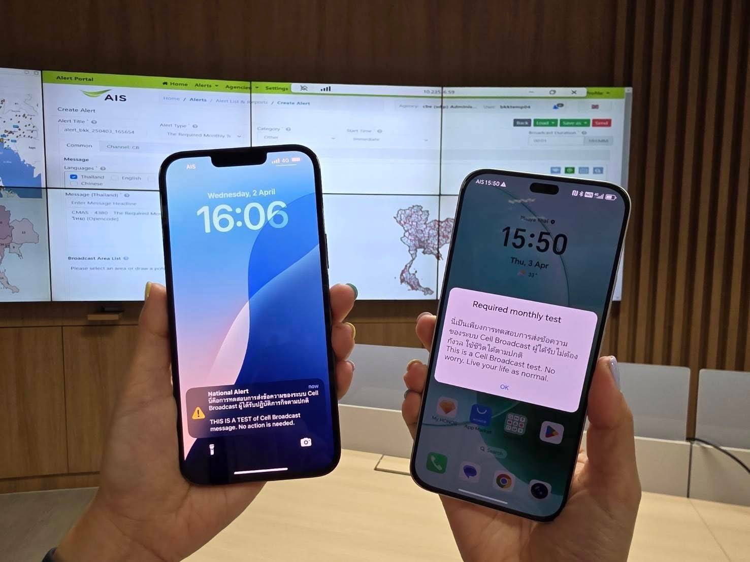 AIS รุดหน้า ร่วมกับ ปภ. ทดสอบระบบเตือนภัย Cell Broadcast บนมือถือแอนดรอยด์ และ iOS ในห้องปฏิบัติการเรียบร้อยแล้ว