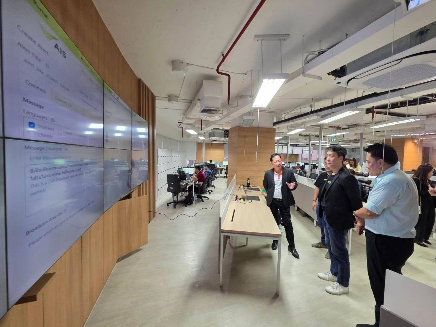 โดยมี นายภาสกร บุญญลักษม์ อธิบดีกรมป้องกันและบรรเทาสาธารณภัย ร่วมเยี่ยมชมการทดสอบที่ Network Operation Center (NOC) หรือศูนย์ปฏิบัติการเครือข่ายอัจฉริยะ พบว่าผลทดสอบเป็นไปตามเป้าหมาย พร้อมที่จะขยายผลเชื่อมโยงกับระบบเตือนภัยของประเทศได้อย่างเต็มประสิทธิภาพ ภายใต้การทำงานร่วมกับกรมป้องกันและบรรเทาสาธารณภัย (ปภ.) กระทรวงมหาดไทย และ กสทช.