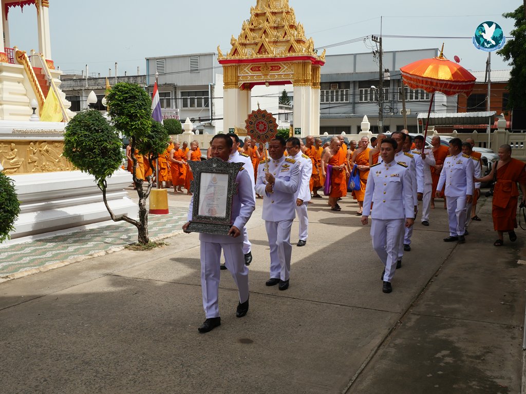 โดยลำดับพิธีเริ่มจากพระครูปริยัติพัฒนกิจ กราบสักการะหลวงพ่อองค์ดำ-ชุ่มเย็น, พระธรรมวงศาจารย์ (สุข สุขโณ) จากนั้นได้ร่วมกันตั้งขบวนเชิญสัญญาบัตร พัดยศ และผ้าไตร แห่รอบพระอุโบสถ 3 รอบ เพื่อเข้าสู่ภายในพระอุโบสถ