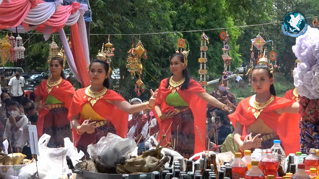 สำหรับประเพณี บวงสรวงศาล “เจ้าปู่เมืองแสน” สิ่งศักดิ์ประจำหมู่บ้าน ชุมชนแห่งนี้ มีความเลื่อมใสศรัทธา มาเป็นเวลากว่า 200 ปี โดยชาวบ้านเชื่อว่า เมื่อใครก็ตามเดินทางมากราบไหว้ขอพร ท่านเจ้าปู่เมืองแสน ก็จะประทานความสมหวังดั่งใจปรารถนาทุกประการ และเมื่อถึงวันที่ 1 มิถุนายน ของทุกปี ซึ่งในปีนี้ มีผู้ที่ประสพความสมหวัง จากการขอพรได้นำเครื่องเซ่นไหว้เป็น เหล้า 300 ไห ไก่ 500 ตัว หัวหมู 100 หัว และผลไม้ 9 อย่าง มากราบไหว้สักการะ ขอขมา และขอบคุณ เจ้าปู่เมืองแสน ที่ช่วยปกปัก คุ้มครอง ให้ในสิ่งที่ขอพรเอาไว้ ดั่งใจปรารถนาทุกประการ