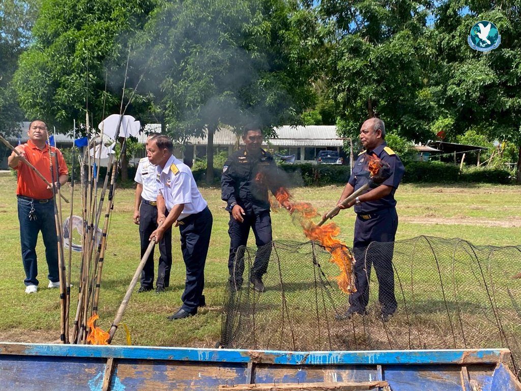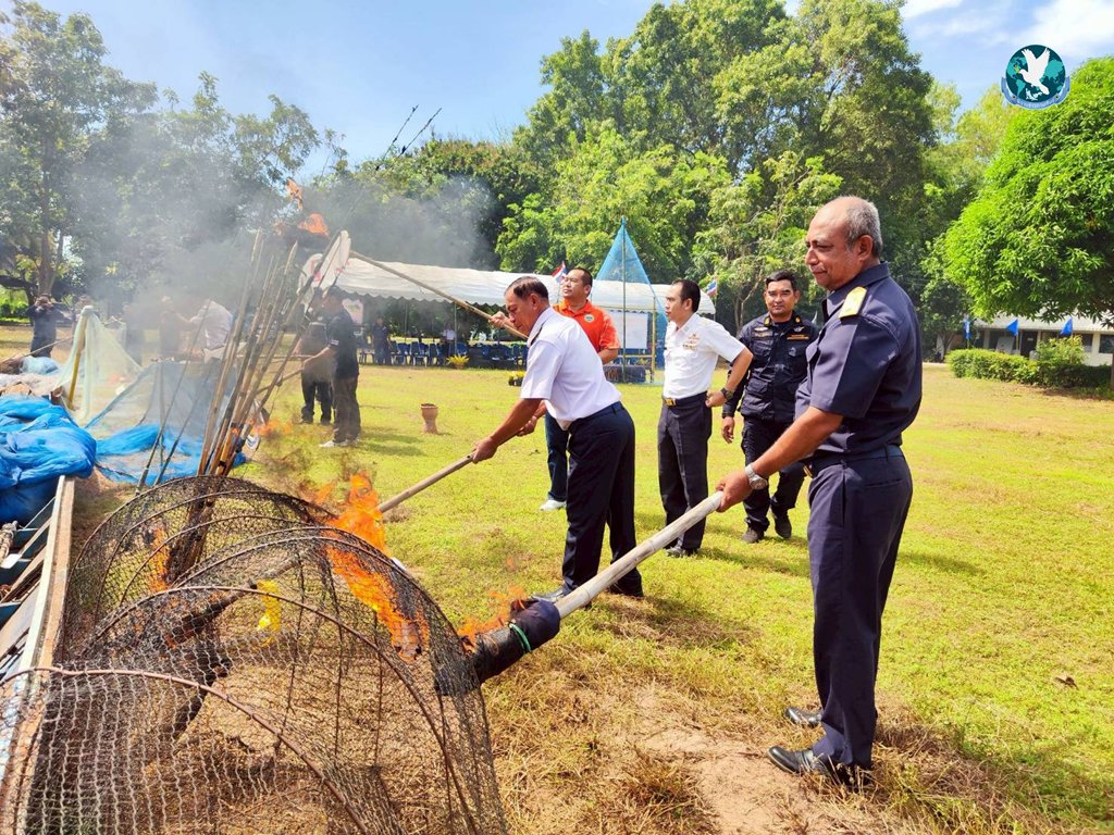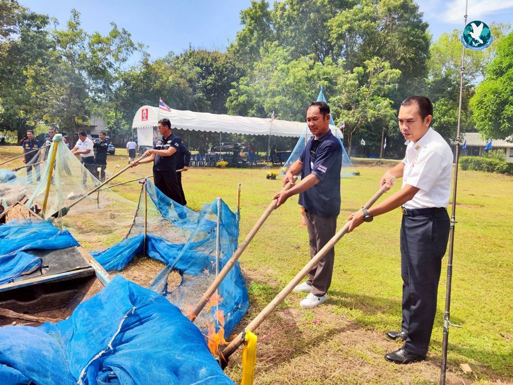 กาฬสินธุ์ ศูนย์ป้องกันและปราบปรามประมงน้ำจืดกาฬสินธุ์ จัดพิธีเผาทำลายเครื่องมือประมงผิดกฎหมาย 597 รายการ ลดความสูญเสียสัตว์น้ำ คิดเป็นเงิน 10,774,375 บาท