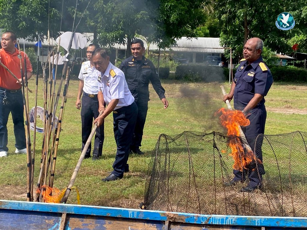 โดยเครื่องมือประมงผิดกฎหมายที่ตรวจยึดได้มี จำนวน 16 ชนิดเครื่องมือ รวมทั้งสิ้น 597 รายการ ดังนี้