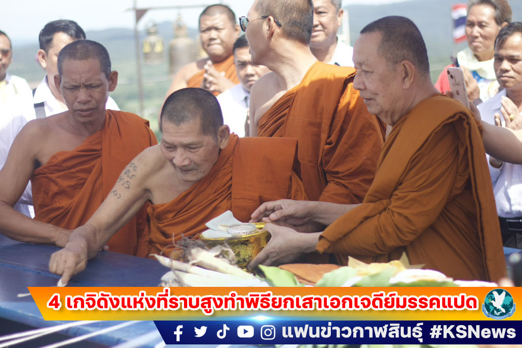 กาฬสินธุ์ เกจิดังแห่งที่ราบสูง 4 อรหันต์ ทำพิธียกเสาเอก-เสาโท เจดีย์มรรคแปด แห่งแรกในอีสาน (บัวศรี-ศิลา-แผน-เวิน)