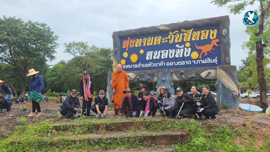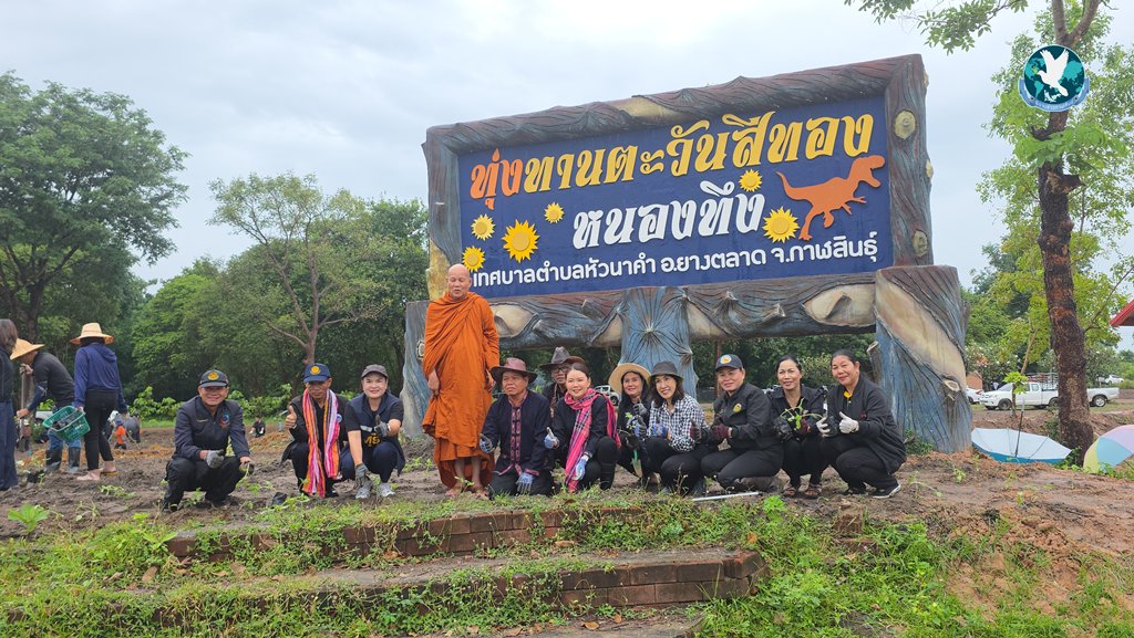 นางจารุวรรณ พันเดช นายกเทศมนตรีตำบลหัวนาคำ กล่าวว่า วันนี้ทางเทศบาลตำบลหัวนาคำร่วมกับภาคีเครือข่ายร่วมกันจัดพิธีถวายอาลัยแด่พระบรมราชชนนีพันปีหลวง ได้ปลูกดอกทานตะวันในทุ่งทานตะวันสีทองหนองทึง จำนวน 50,000 ต้น ถวายเป็นพระราชกุศลฯ วันนี้มีสายฝนตกโปรยปรายทำให้ชุ่มฉ่ำ มีชาวบ้านทั้ง 19 หมู่บ้านออกมาร่วมกันปลูกดอกทานตะวันเพื่อส่งเสริมเป็นแหล่งท่องเที่ยวให้ชาวจังหวัดกาฬสินธุ์ ซึ่งเป็นจุดเช็คอินจุดแรกของตำบลและของจังหวัดกาฬสินธุ์ ซึ่งเป็นประตูหน้าด่านเข้าสู่เมืองน้ำดำ พื้นที่สวนสาธารณะตรงนี้มีจำนวน 400 กว่าไร่ ส่วนพื้นที่โครงการปลูกดอกทานตะวันที่อยู่ติดถนนมีจำนวน 16 ไร่ โดยต้นกล้าที่เราใช้ปลูกได้เริ่มเพาะกล้ามาตั้งแต่วันที่ 21 ตุลาคมที่ผ่านมา คาดว่าประมาณ 60 วันก็จะมีดอกทานตะวันออกบานสะพรั่งให้นักท่องเที่ยวได้แวะมาเช็คอิน คาดว่าดอกทานตะวันจะบานทันงานทุ่งทานตะวันสีทองหนองทึง ที่จะมีพิธีเปิดในวันที่ 25 ธันวาคมนี้ ซึ่งจะมีการจัดงานมหกรรมทุ่งทานตะวัน 3 วัน 3 คืน ในระหว่างวันที่ 25 – 27 ธันวาคม 2568 เพื่อต้อนรับนักท่องเที่ยวและส่งท้ายปีเก่าต้อนรับปีใหม่ที่จะถึงนี้