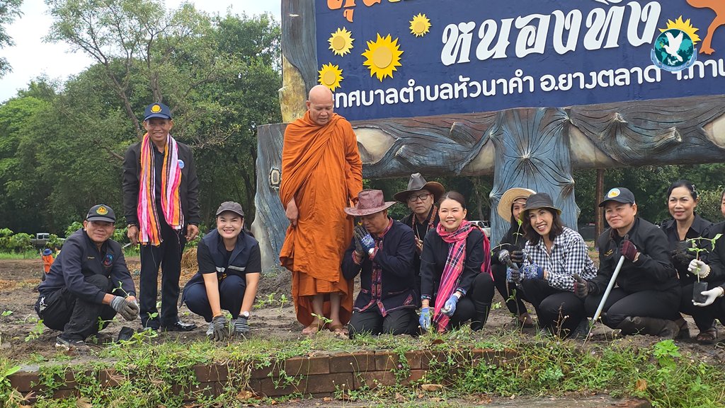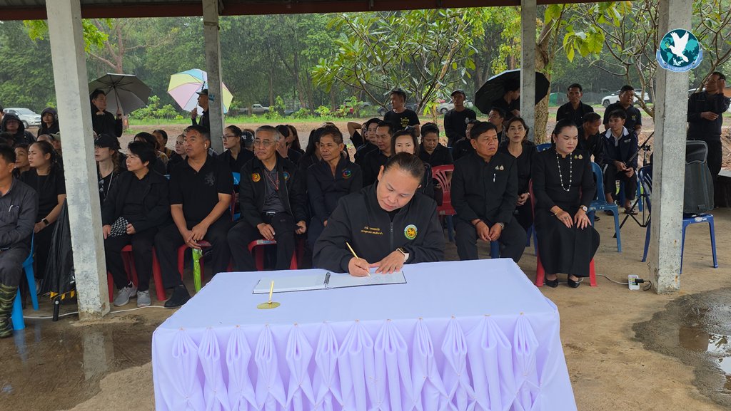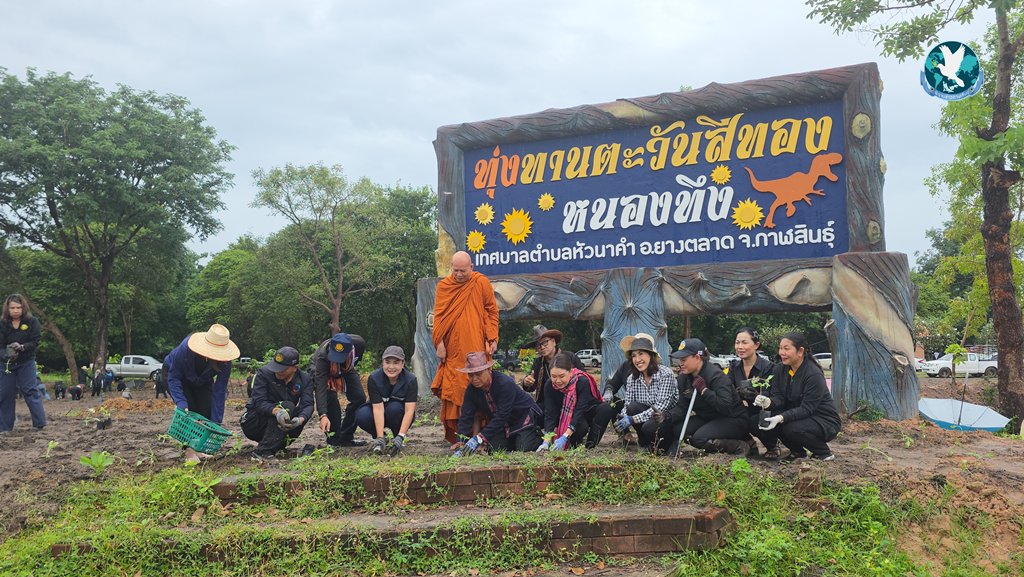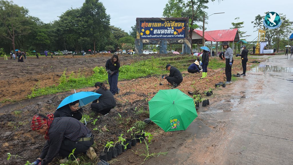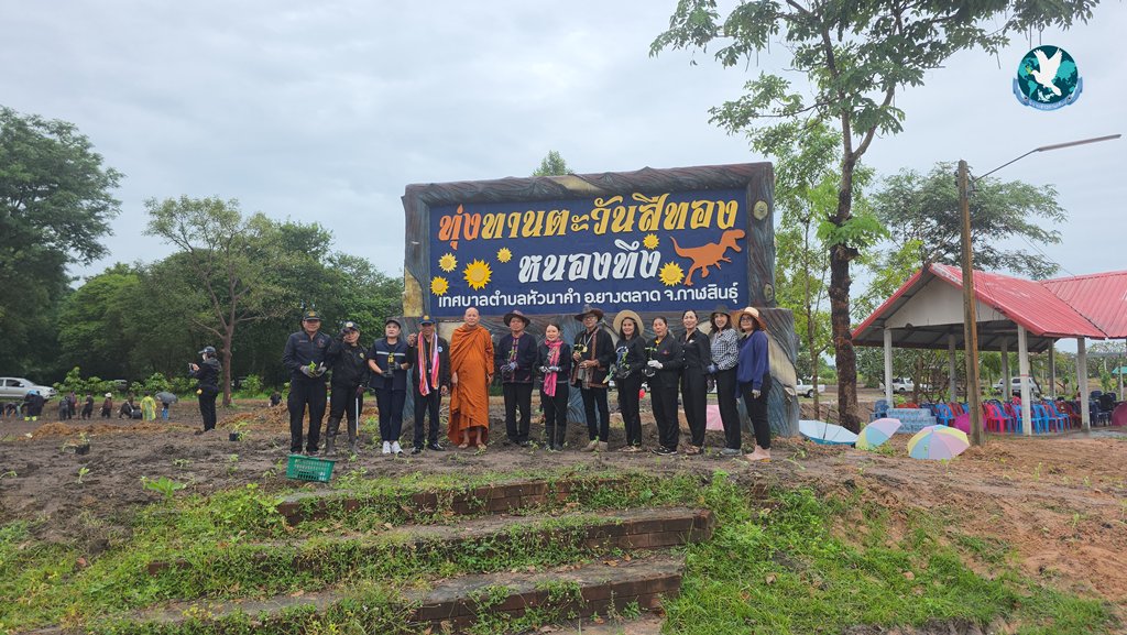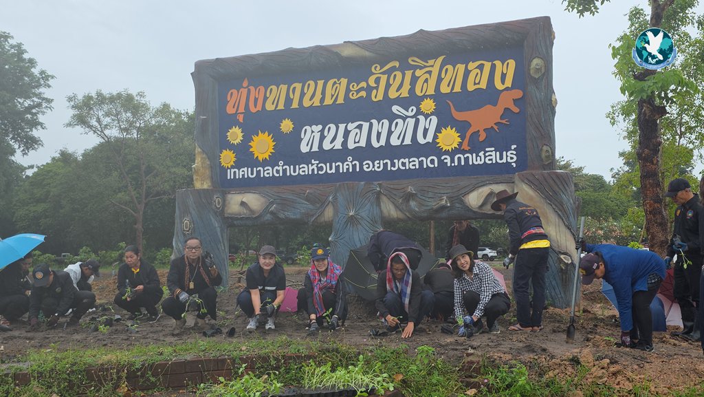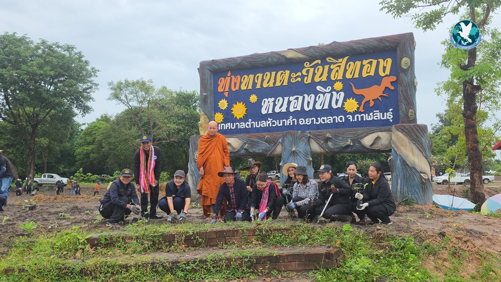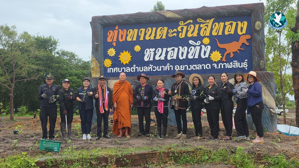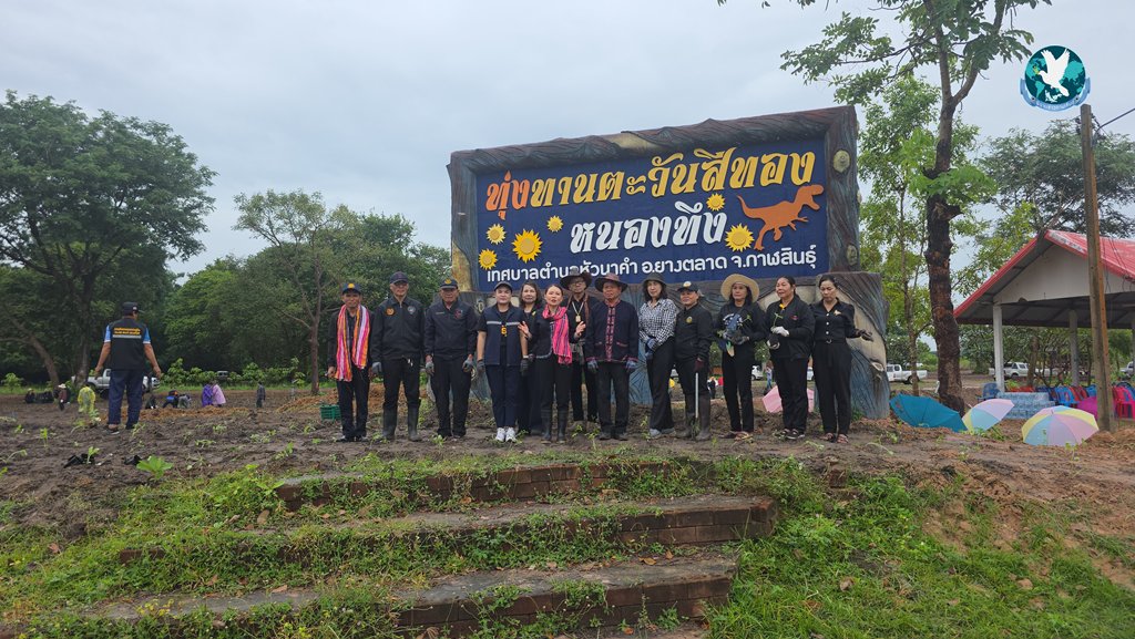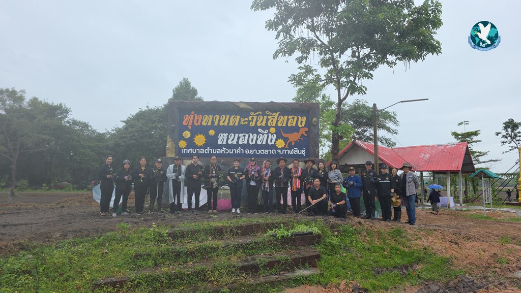 นางจารุวรรณ พันเดช นายกเทศมนตรีตำบลหัวนาคำ กล่าวว่า วันนี้ทางเทศบาลตำบลหัวนาคำร่วมกับภาคีเครือข่ายร่วมกันจัดพิธีถวายอาลัยแด่พระบรมราชชนนีพันปีหลวง ได้ปลูกดอกทานตะวันในทุ่งทานตะวันสีทองหนองทึง จำนวน 50,000 ต้น ถวายเป็นพระราชกุศลฯ วันนี้มีสายฝนตกโปรยปรายทำให้ชุ่มฉ่ำ มีชาวบ้านทั้ง 19 หมู่บ้านออกมาร่วมกันปลูกดอกทานตะวันเพื่อส่งเสริมเป็นแหล่งท่องเที่ยวให้ชาวจังหวัดกาฬสินธุ์ ซึ่งเป็นจุดเช็คอินจุดแรกของตำบลและของจังหวัดกาฬสินธุ์ ซึ่งเป็นประตูหน้าด่านเข้าสู่เมืองน้ำดำ พื้นที่สวนสาธารณะตรงนี้มีจำนวน 400 กว่าไร่ ส่วนพื้นที่โครงการปลูกดอกทานตะวันที่อยู่ติดถนนมีจำนวน 16 ไร่ โดยต้นกล้าที่เราใช้ปลูกได้เริ่มเพาะกล้ามาตั้งแต่วันที่ 21 ตุลาคมที่ผ่านมา คาดว่าประมาณ 60 วันก็จะมีดอกทานตะวันออกบานสะพรั่งให้นักท่องเที่ยวได้แวะมาเช็คอิน คาดว่าดอกทานตะวันจะบานทันงานทุ่งทานตะวันสีทองหนองทึง ที่จะมีพิธีเปิดในวันที่ 25 ธันวาคมนี้ ซึ่งจะมีการจัดงานมหกรรมทุ่งทานตะวัน 3 วัน 3 คืน ในระหว่างวันที่ 25 – 27 ธันวาคม 2568 เพื่อต้อนรับนักท่องเที่ยวและส่งท้ายปีเก่าต้อนรับปีใหม่ที่จะถึงนี้