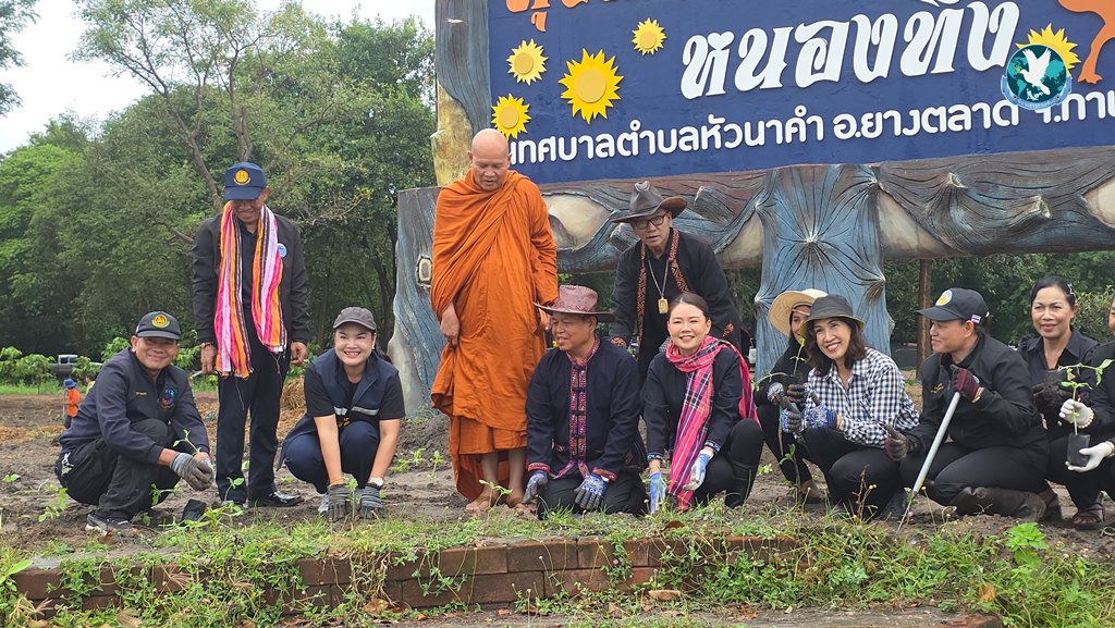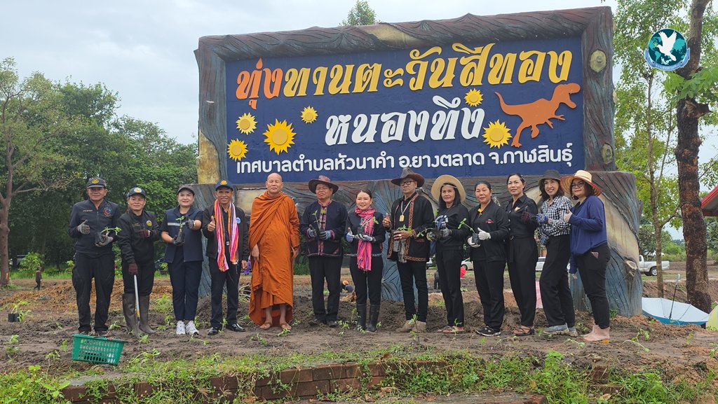 กาฬสินธุ์ ที่ลานพิธี สวนสาธารณะหนองทึง บ้านดงบัง ตำบลหัวนาคำ อำเภอยางตลาด จังหวัดกาฬสินธุ์ นางจารุวรรณ พันเดช นายกเทศมนตรีตำบลหัวนาคำ พร้อมคณะผู้บริหาร สมาชิกสภาฯ กำนัน ผู้ใหญ่บ้าน อสม. หัวหน้าส่วนราชการ เจ้าหน้าที่เทศบาลหัวนาคำ ร่วมกันจัดพิธีน้อมรำลึกในพระมหากรุณาธิคุณ และลงนามถวายอาลัย สมเด็จพระนางเจ้าสิริกิติ์ พระบรมราชินีนาถ พระบรมราชชนนีพันปีหลวง โดยมีนางเฉลิมขวัญ หล่อตระกูล นายกองค์การบริหารส่วนจังหวัดกาฬสินธุ์, นางวันเพ็ญ เศรษฐรักษา อดีตที่ปรึกษารัฐมนตรีช่วยกระทรวงเกษตรและสหกรณ์ ร่วมปลูกต้นทานตะวัน ณ ทุ่งทานตะวันสีทองหนองทึง เทศบาลตำบลหัวนาคำ