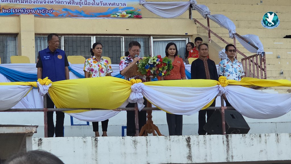 วันนี้ (24 เมษายน 2569) ที่สนามกีฬากลางจังหวัดกาฬสินธุ์ อำเภอเมือง จังหวัดกาฬสินธุ์ นายธนภัทร ณ ระนอง รองผู้ว่าราชการจังหวัดกาฬสินธุ์ เป็นประธานพิธีเปิดกิจกรรมรดน้ำขอพรผู้ใหญ่ และการจัดกิจกรรมแข่งขันกีฬาเพื่อเชื่อมความสัมพันธ์ เนื่องใน “วันเทศบาล ประจำปี พ.ศ. 2569” โดยมี ดร.เกรียงไกร ภูมิเหล่าแจ้ง นายกเทศมนตรีตำบลยางตลาด ประธานสันนิบาตเทศบาลจังหวัดกาฬสินธุ์ พร้อมด้วยตัวแทนของเทศบาลตำบล, องค์การบริหารส่วนตำบล ในจังหวัดกาฬสินธุ์ เข้าร่วมพิธีอย่างพร้อมเพรียง