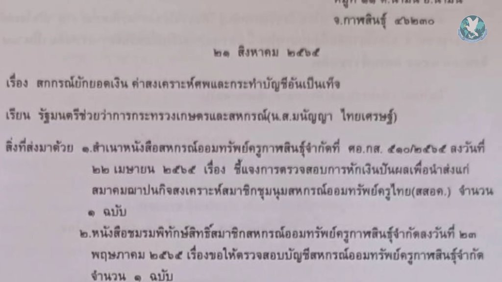 สมาชิกสหกรณ์ออมทรัพย์ครูกาฬสินธุ์ ร้องมนัญญา รมช.เกษตรฯ ตรวจสอบเอาผิด สหกรณ์ออมทรัพย์ครูกาฬสินธุ์ ทุจริตแต่งบัญชีอมเงินผี 50 ล้าน