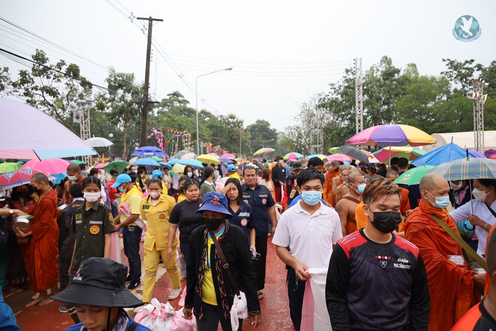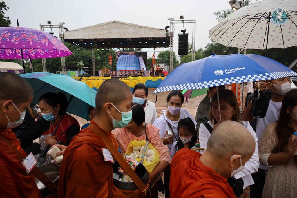 พุทธศาสนิกชนจังหวัดกาฬสินธุ์และจังหวัดใกล้เคียง ร่วมสืบสานงานบุญประเพณีตักบาตรเทโวโรหณะ วันออกพรรษา ขึ้นบันไดสวรรค์ 654 ขั้น นมัสการพระพรหมภูมิปาโล ที่วัดพุทธาวาสภูสิงห์ อำเภอสหัสขันธ์ จังหวัดกาฬสินธุ์ อย่างคับคั่ง ท่ามกลางสายฝนโปรยปราย