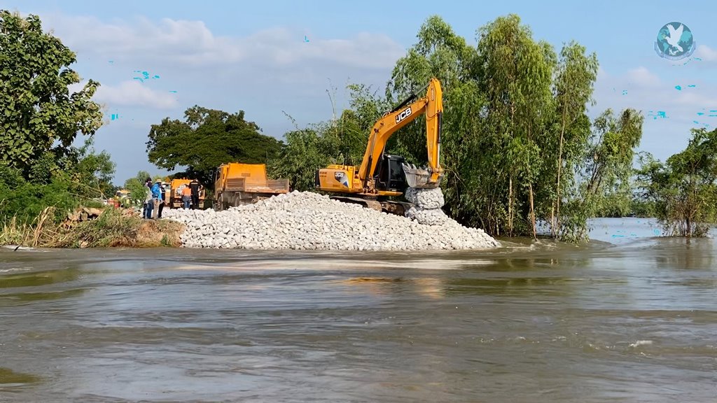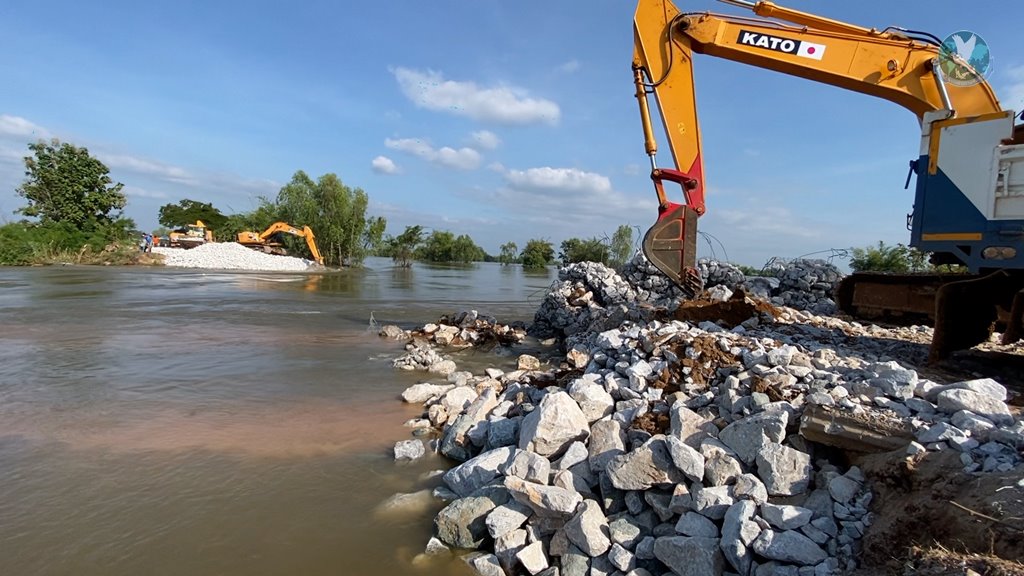 การซ่อมแซมพนังกั้นน้ำทั้ง 2 ฝั่ง คืบหน้าไปแล้ว มากกว่า 15 เมตร จิตอาสาช่วยกัน ระดมจิตอาสากว่า 100 ชีวิต บรรจุหินแกเบรียนใส่กล่อง ขณะที่ รักษาราชการผู้ว่าฯ จ.กาฬสินธุ์ เร่งแจกข้าวปลาอาหารชาวบ้านที่ได้รับผมกระทบ