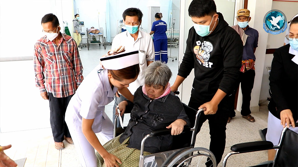 ต่อมาเวลาประมาณ 11.00 น. คณะฯ ได้เดินทางไปมอบรถวีลแชร์ จำนวน 3 คัน ให้แก่ผู้ป่วยติดเตียงที่โรงพยาบาลฆ้องชัย ซึ่งได้รับคำชื่นชมและคำขอบคุณจากผู้ได้รับและผู้ร่วมงานเป็นอย่างดียิ่ง