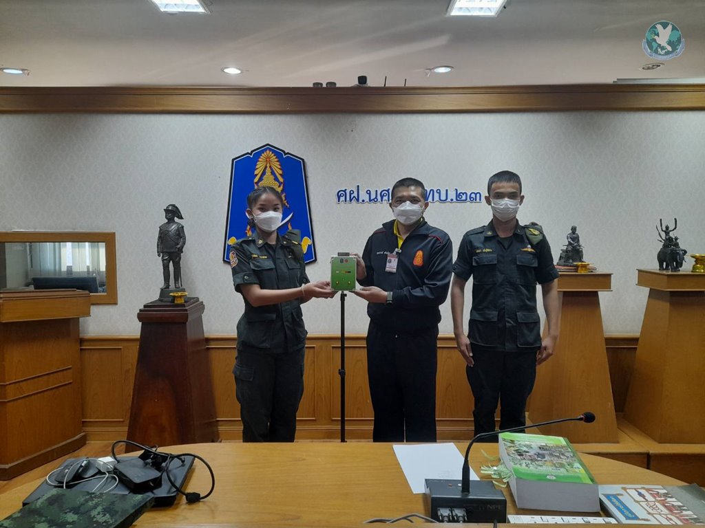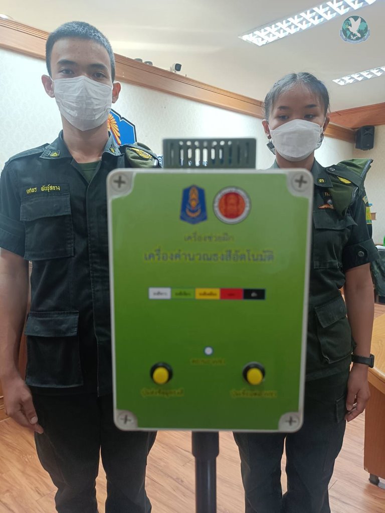 เมื่อวันที่ 9 พฤศจิกายน 2565 นายอรุณ เลิศอุดมโชค ผู้อำนวยการวิทยาลัยการอาชีพกาฬสินธุ์ มอบหมายให้ นายนราทิพย์ เหล่าเขตกิจ หัวหน้างานกิจกรรม, นายอธิเจตน์ ทิวะสิงห์ หัวหน้างานวิจัยพัฒนานวัตกรรมและสิ่งประดิษฐ์ ,ว่าที่ร้อยเอกจารยุทธ ปาละสานต์ ครูที่ปรึกษาชมรมนักศึกษาวิชาทหาร และนักศึกษาวิชาทหาร จำนวน 2 นาย นศท.ญ ฐิติรัตน์ ชัยประโคม นร.สาขาวิชาการบัญชี และนศท.ยศพร พันธ์สอาด นร. สาขาวิชาช่างกลโรงงาน เป็นผู้นำเสนอผลงาน และส่งมอบสิ่งประดิษฐ์นวัตกรรม เครื่องช่วยฝึก “เครื่องคำนวณสีธงอัตโนมัติ” เพื่อใช้วัดอุณหภูมิความร้อนระหว่างการฝึก แจ้งเตือนผ่านระบบแอพพลิเคชั่นถึงครูฝึก ส่งมอบให้กับทางศูนย์การฝึกนักศึกษาวิชาทหาร มณฑลทหารบกที่ 23 โดยมีท่าน พันเอกอุดมการณ์ ศรีแขไตร ผู้บังคับศูนย์การฝึกนักศึกษาวิชาทหาร มณฑลทหารบกที่ 23 เป็นผู้รับมอบพร้อมคณะ