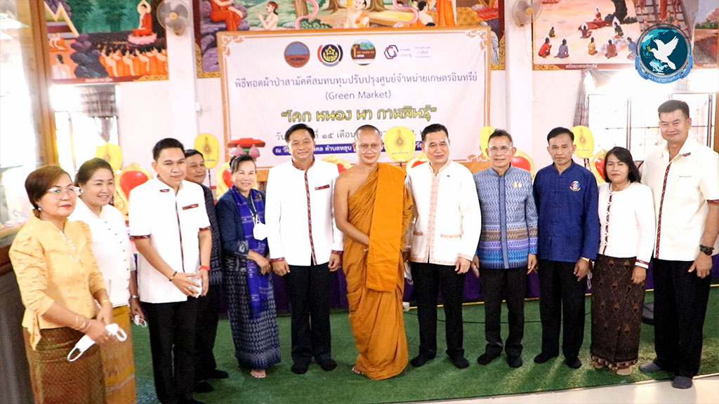 นายอุทัย สิงห์ทอง พัฒนาการจังหวัดกาฬสินธุ์ ในนามคณะกรรมการดำเนินงานทอดผ้าป่าสมทบปรับปรุงศูนย์จำหน่ายเกษตรอินทรีย์ (Green Market) โคก หนอง นา กาฬสินธุ์ ได้กล่าวรายงานความเป็นมาโครงการทอดผ้าป่าสมทบทุนปรับปรุงศูนย์จำหน่ายเกษตรอินทรีย์ (Green Market) โคก หนอง นา กาฬสินธุ์ โดยสรุปว่า “สำนักงานพัฒนาชุมชนจังหวัดกาฬสินธุ์ คณะกรรมการเครือข่ายโคก หนอง นา จังหวัดกาฬสินธุ์ ร่วมกับบริษัทประชารัฐรักสามัคคี (วิสาหกิจเพื่อสังคม) จังหวัดกาฬสินธุ์ จำกัด ได้จัดประชุมวิสามัญผู้ถือหุ้น บริษัทประชารัฐรักสามัคคีกาฬสินธุ์ (วิสาหกิจเพื่อสังคม) จำกัด โดยจะดำเนินการปรับปรุงศูนย์จำหน่ายผลิตภัณฑ์ชุมชนด้านเกษตรอินทรีย์ (Green Market) บริเวณอาคารธนาคารกรุงไทย สนามศาลากลางหลังเก่า อำเภอเมืองกาฬสินธุ์ จังหวัดกาฬสินธุ์ เพื่อพัฒนาเป็นศูนย์กระจายสินค้า ของผู้ผลิต/ผู้ประกอบการ โคก หนอง นา กาฬสินธุ์ จำนวน 2,748 แปลง และกลุ่มเป้าหมายของบริษัทประชารัฐรักสามัคคี (วิสาหกิจเพื่อสังคม) จังหวัดกาฬสินธุ์ จำกัด ได้แก่ เกษตร แปรรูป และท่องเที่ยวโดยชุมชน ซึ่งศูนย์ดังกล่าวจะเป็นแหล่งจำหน่ายและกระจายสินค้าทางการเกษตร แปรรูป ที่ได้มาตรฐานของจังหวัดกาฬสินธุ์ เพิ่มช่องทางการตลาดเกษตรอินทรีย์ สนับสนุนแนวทางการพัฒนาเศรษฐกิจแบบ BCG สู่การพัฒนาแบบยั่งยืน SDGs ต่อไป โดยมีผู้เข้าร่วมในกิจกรรมครั้งนี้ประมาณ 300 คน”