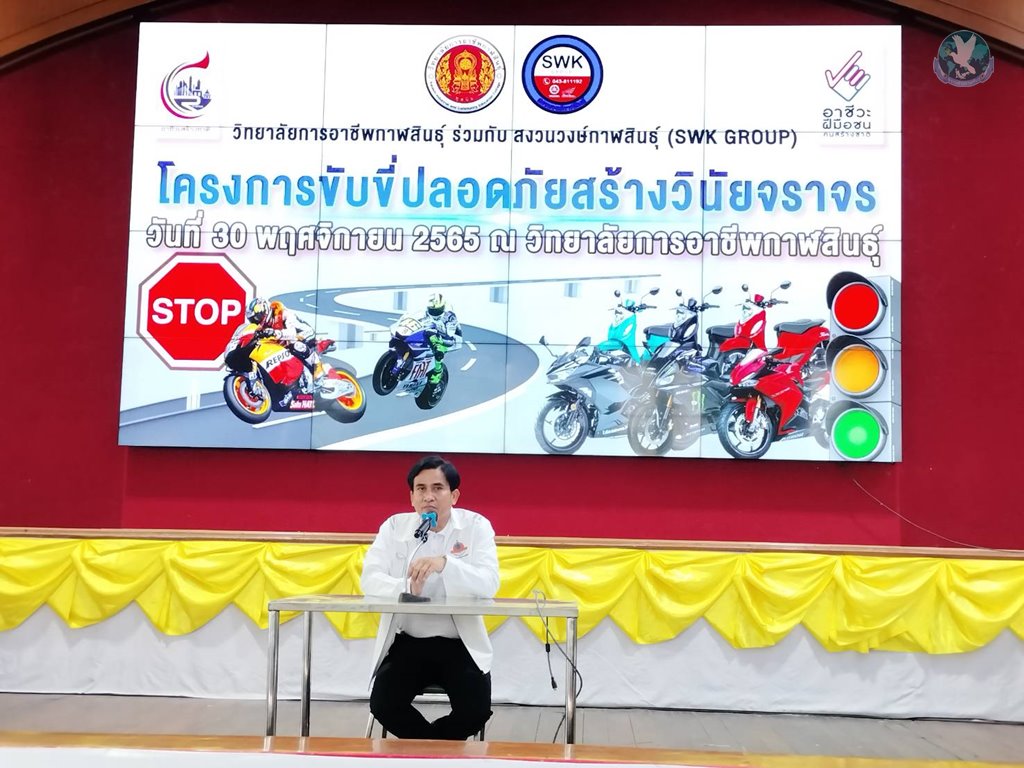 เมื่อวันที่ 30 พ.ย. 2565 ณ หอประชุมเอนกประสงค์ วิทยาลัยการอาชีพกาฬสินธุ์ อ.เมือง จ.กาฬสินธุ์ ได้มีการจัดโครงการขับขี่ปลอดภัยสร้างวินัยจราจร โดยความร่วมมือระหว่างวิทยาลัยการอาชีพกาฬสินธุ์ กับ สงวนวงษ์กาฬสินธุ์ โดยมีนายมานพ ภูทองขาว รองผู้อำนวยการฝ่ายบริหารทรัพยากร วิทยาลัยการอาชีพกาฬสินธุ์ เป็นประธานเปิดงาน พร้อมด้วยผู้บริหารจากสงวนวงษ์กาฬสินธุ์ คณะครูแผนกวิชาช่างยนต์ นักเรียน นักศึกษา แผนกวิชาช่างยนต์เข้าร่วมโครงการอย่างพร้อมเพรียง