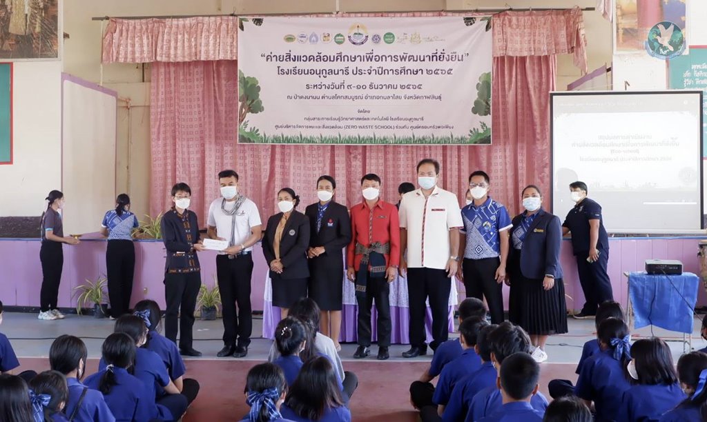 ศูนย์บริหารจัดการขยะและสิ่งแวดล้อม (Zero Waste School) โรงเรียนอนุกูลนารี ร่วมกับชุมชนดีมีรอยยิ้มเมืองกาฬสินธุ์ จัดกิจกรรม “ค่ายสิ่งแวดล้อมศึกษาเพื่อการพัฒนาที่ยั่งยืน” โรงเรียนอนุกูลนารี ประจำปี 2565 ณ ป่าดงนามล ตำบลโคกสมบูรณ์ อำเภอกมลาไสย จังหวัดกาฬสินธุ์ ระหว่างวันที่ 9-10 ธันวาคม 2565 โดยมีนายเอกรักษ์ สารปรัง ผู้อำนวยการโรงเรียนอนุกูลนารี กล่าวต้อนรับผู้เข้าร่วมกิจกรรมทั้งภาครัฐ ภาคเอกชน ภาคประชาชน และนักเรียนโรงเรียนอนุกูลนารี ได้รับเกียรติจาก นางสาวภัทรา วรามิตร สมาชิกวุฒิสภา เป็นประธานเปิดกิจกรรมค่ายในครั้งนี้