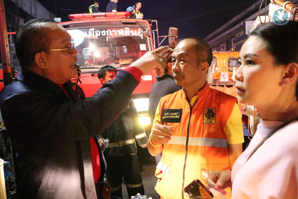 วันนี้ (2 ม.ค. 2566) เวลาประมาณ 20.00 น. ร.ต.ท.พิพัฒน์พงศ์ มหาชัย ร้อยเวร สภ.เมืองกาฬสินธุ์ รับแจ้งเหตุไฟไหม้ห้างทองลิ้มเคียนฮวด 3 ตั้งอยู่ถนนเทศบาล 23 อ.เมือง จ.กาฬสินธุ์ ด้านขวาติดกันกับร้านขายยาระเบียบเภสัช ด้านซ้ายติดกับคลินิกรักฟัน ทราบข้อมูลว่ายังมีผู้พักอาศัยอยู่ในอาคารอีก 2 รายที่ยังไม่ได้รับการช่วยเหลือออกมา จึงได้ประสานไปยังหน่วยดับเพลิงเทศบาลเมืองกาฬสินธุ์ และหน่วยดับเพลิงใกล้เคียงให้เข้าช่วยเหลือ โดยมีนายศุภศิษย์ กอเจริญยศ ผู้ว่าราชการจังหวัดกาฬสินธุ์ พร้อมด้วย นายสำเริง ม่วงสังข์ รองผู้ว่าราชการจังหวัดกาฬสินธุ์, นางเฉลิมขวัญ หล่อตระกูล นายกองค์การบริหารส่วนจังหวัดกาฬสินธุ์, นายสุเทพ ชัยวัฒน์ นายอำเภอเมืองกาฬสินธุ์, นายจารุวัฒน์ บุญเพิ่ม นายกเทศมนตรีเมืองกาฬสินธุ์, นายตรีรัตน์ ศรีแก้วขวัญ ป้องกันและบรรเทาสาธารณภัยจังหวัดกาฬสินธุ์ และหน่วยงานที่เกี่ยวข้องลงพื้นที่เข้าร่วมบูรณาการในการอำนวยการระงับเหตุ