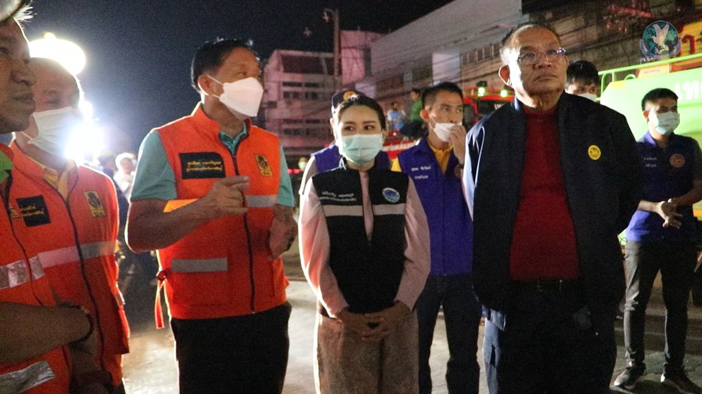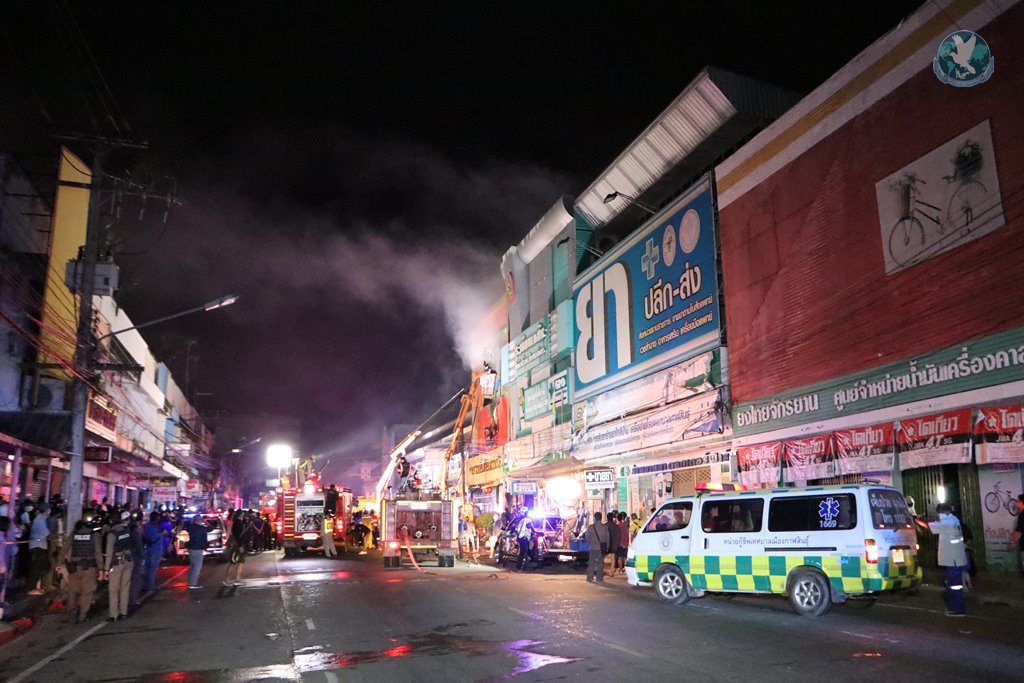 โดยสถานที่เกิดเหตุเป็นอาคารพานิชย์ 3 ชั้น เปิดเป็นห้างทองมาแล้วกว่า 40 ปี เบื้องต้นได้รับการรายงานว่ามีผู้ที่ติดอยู่ภายในตัวอาคารอยู่ 2 คน เจ้าหน้าที่ทุกภาคส่วนจึงได้ร่วมกันระดมฉีดน้ำดับเพลิงที่กำลังลุกลาม เพื่อป้องกันไม่ให้เพลิงขยายวงกว้างให้เกิดความสูญเสียน้อยที่สุด โดยมีการใช้โดรนตรวจจับความร้อนจาก นายเก่งกาจ บ้งกาวงศ์ นายกสมาคมเมตตาธรรมทิพยสถาน “เต็กก่า” จีโหงวเกาะ ที่ใช้โดรนขึ้นบินสำรวจแล้วพบมีกลุ่มความร้อนที่อยู่ภายในอาคารชั้น 3 จำนวน 2 จุด จึงได้เร่งให้เจ้าหน้าที่ช่วยกันฉีดน้ำดับเพลิงให้ตรงจุด และเข้าค้นหาเพื่อนำตัวผู้ที่ติดอยู่ในตัวอาคารออกมาให้ได้โดยเร็วที่สุด แต่เนื่องจากตัวอาคารเป็นห้างทองที่มีการติดตั้งกรงเหล็กรักษาความปลอดภัยอย่างแน่นหนา จึงทำให้การทำงานเป็นไปด้วยความยากลำบาก และจนถึงเวลา 23.40 น. จึงสามารถนำตัวผู้ติดในอาคารทั้ง 2 คนลงมาได้ เพื่อนำตัวส่งไปรักษาตัวที่โรงพยาบาลกาฬสินธุ์ และได้เสียชีวิตในเวลาต่อมา