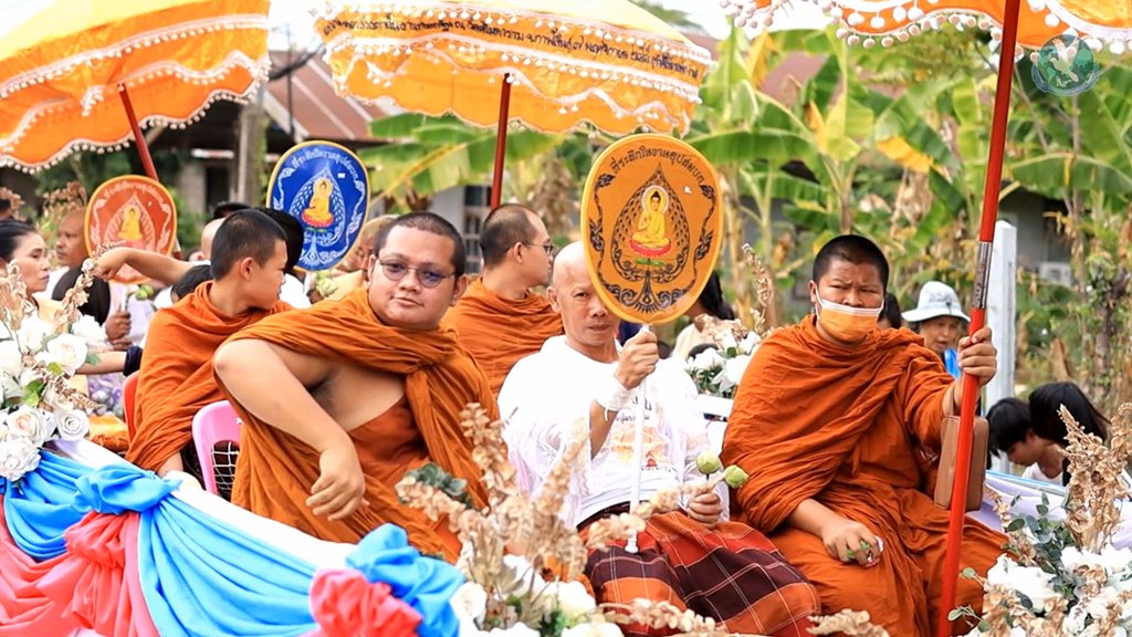 กาฬสินธุ์จัดงานบวชสุดเก๋ สร้างสีสันในงานบุญ แต่งรถไถใช้แห่นาค หว่านกัลปพฤกษ์