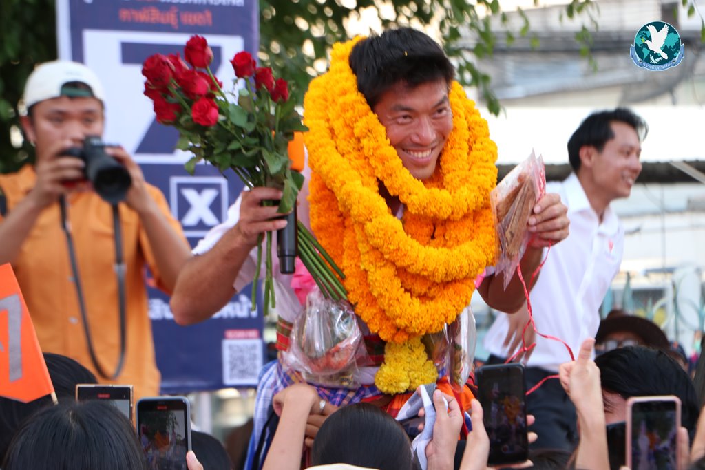 วันนี้ (4 พ.ค. 2566) เวลา 16.30 น. ณ ลานจอดรถหน้าสำนักงานทะเบียนท้องถิ่น เทศบาลเมืองกาฬสินธุ์ อ.เมือง จ.กาฬสินธุ์ พรรคก้าวไกล นำโดย ธนาธร จึงรุ่งเรืองกิจ, ครูใหญ่ อรรถพล บัวพัฒน์ และ ดร.แว็ค ชวลิต กงเพชร ผู้สมัคร ส.ส. กาฬสินธุ์ เขต 1 เบอร์ 7 พรรคก้าวไกล ตบท้าวขึ้นเวทีปราศรัยใหญ่ หาเสียงโค้งสุดท้ายก่อนการเลือกตั้ง โดยมีผู้สมัคร ส.ส. ในนามพรรคก้าวไกลในจังหวัดกาฬสินธุ์ขึ้นโชว์ตัวด้วย มีประชาชนที่ชื่นชอบและสนับสนุนพรรคก้าวไกล เข้าร่วมฟังการปราศรัยครั้งนี้จำนวนมาก โดยก่อนหน้านี้จะจัดปราศรัยที่ ลานโพธิ์ 225 ปี วัดใต้โพธิ์ค้ำ อ.เมือง จ.กาฬสินธุ์ แต่ด้วยกระแสการชื่นชอบของพรรคก้าวไกลที่มาแรงมากในช่วงนี้ คาดว่าหากจัดเวทีปราศรัยสถานที่เดิมอาจจะไม่สามารถรองรับจำนวนผู้เข้าร่วมฟังปราศรัย จึงได้ย้ายสถานที่จัดปราศรัยมาแห่งใหม่ และก็เป็นไปตามคาด ที่มีพี่น้องประชาชนทุกเพศทุกวัยหลายพันคนแห่ให้กำลังใจ สนับสนุน ส.ส.แบบแบ่งเขต และหวังจะได้ “พิธา” เป็นนายกรัฐมนตรี