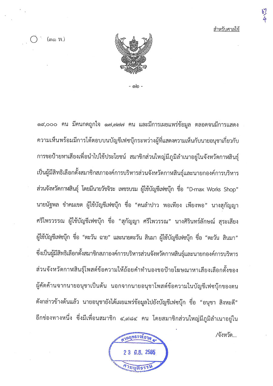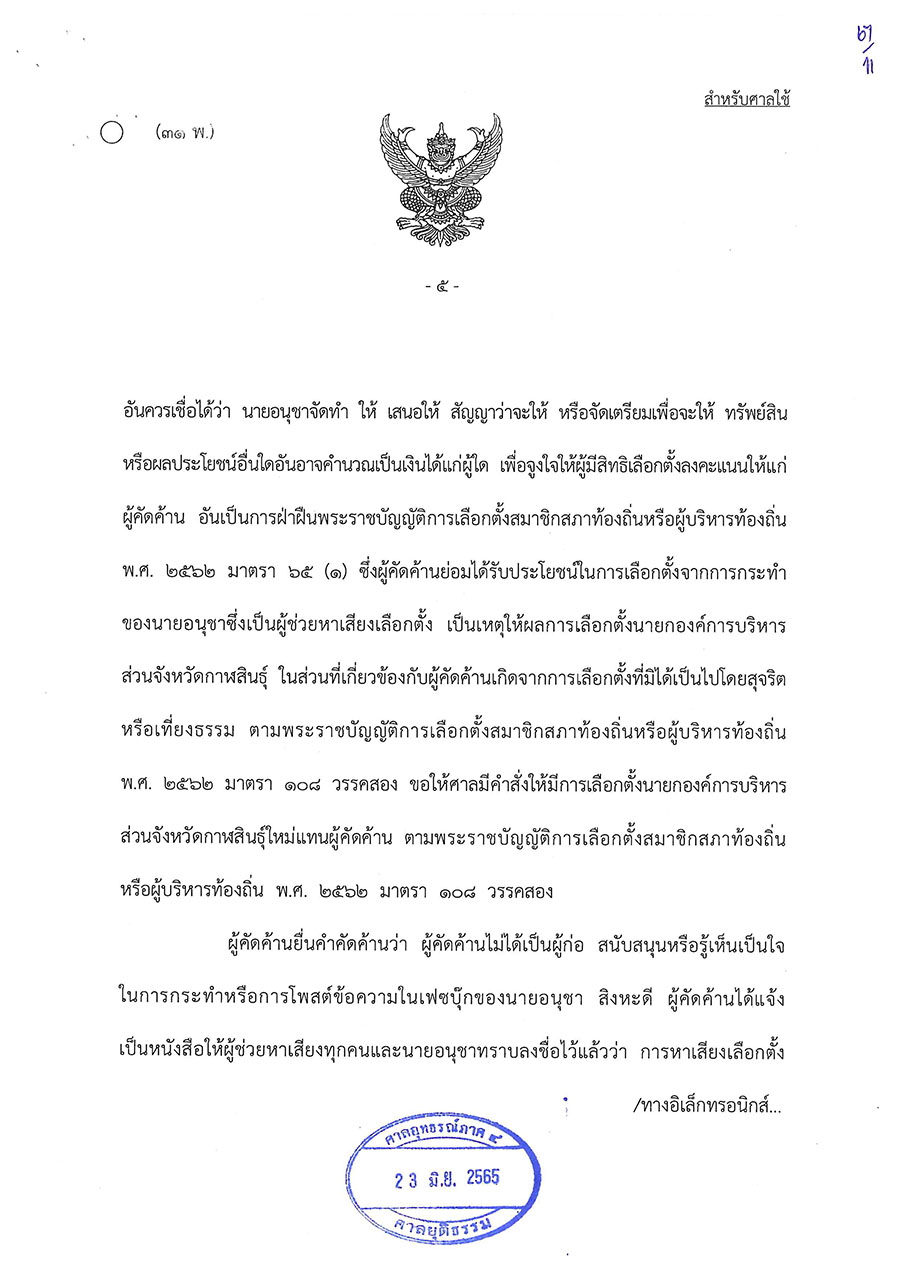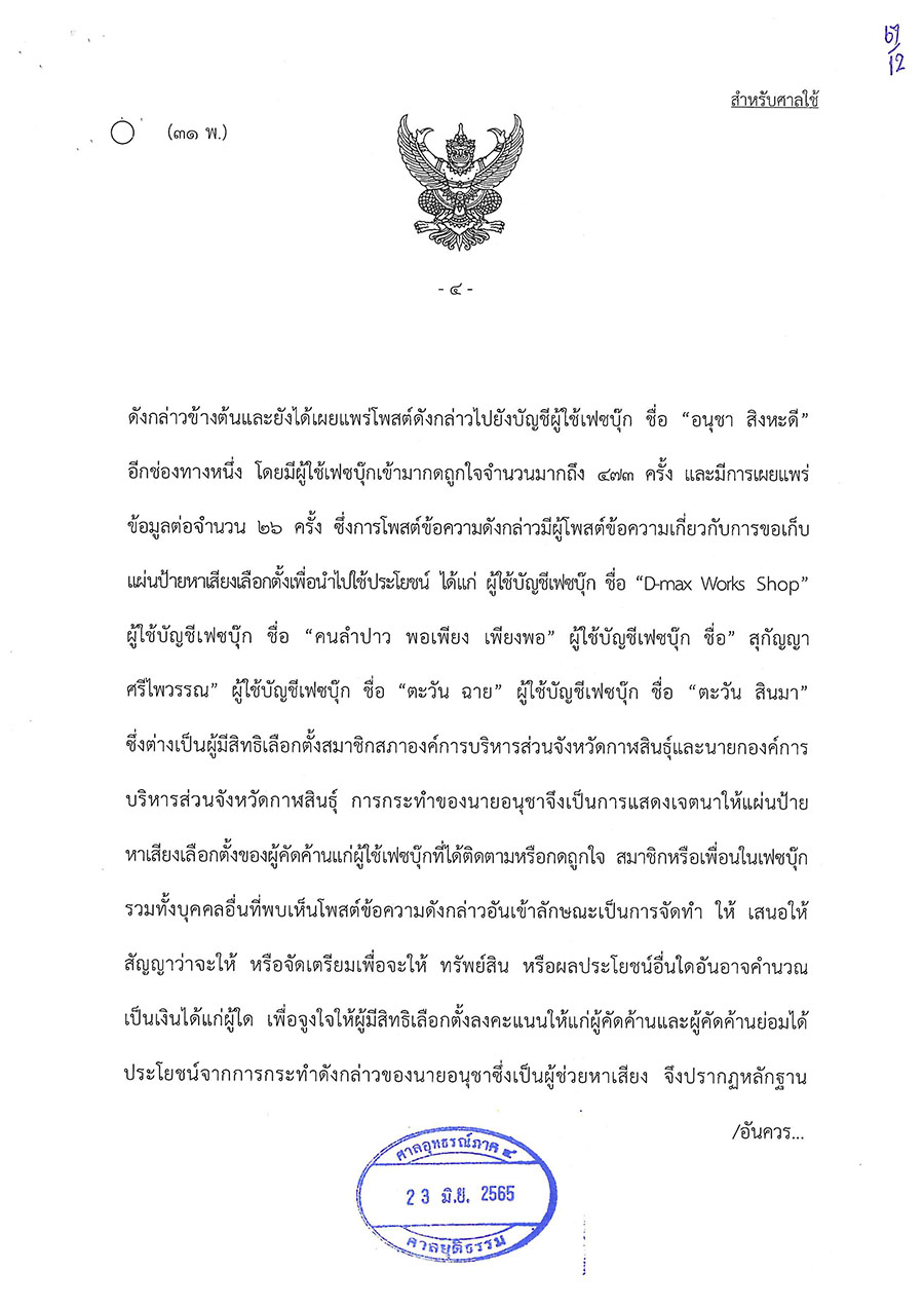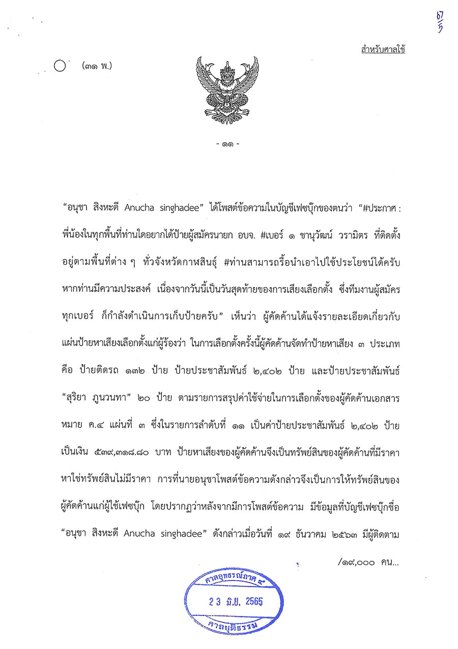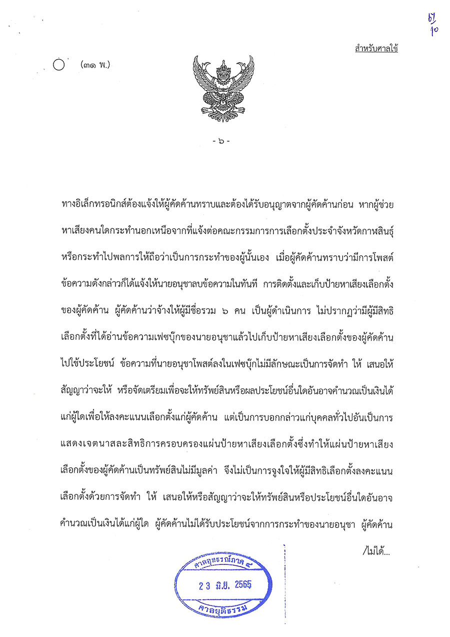 วันนี้ (23 มิ.ย. 65) ศาลอุทธรณ์ภาค 4 พิพากษาให้มีการเลือกตั้งนายกองค์การบริหารส่วนจังหวัดกาฬสินธุ์ใหม่ ตามพระราชบัญญัติการเลือกตั้งสมาชิกสภาท้องถิ่นหรือผู้บริหารท้องถิ่น พ.ศ. 2562 มาตรา 108 วรรคสอง