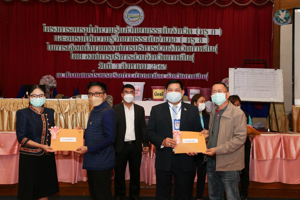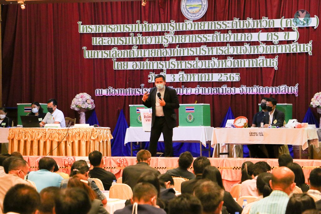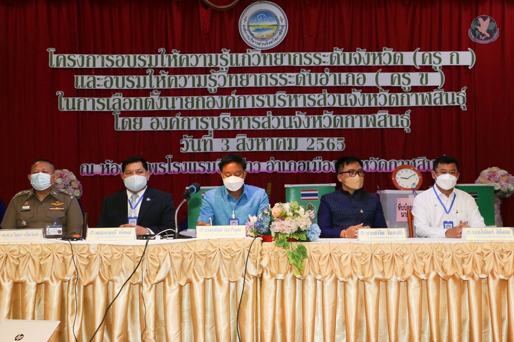 (3 ส.ค. 65) เวลา 09.00 น. ณ ห้องประชุมทศพร โรงแรมริมปาว อำเภอเมืองกาฬสินธุ์ จังหวัดกาฬสินธุ์ องค์การบริหารส่วนจังหวัดกาฬสินธุ์ นำโดย นางเพ็ญศรี แสงดารา ผู้อำนวยการการเลือกตั้งประจำองค์การบริหารส่วนจังหวัดกาฬสินธุ์ ร่วมกับสำนักงานคณะกรรมการการเลือกจังหวัดกาฬสินธุ์, นายสุรพงษ์ ทิพย์โอสถ ผู้อำนวยการการเลือกตั้งประจำจังหวัดกาฬสินธุ์ จัดโครงการอบรมให้ความรู้แก่วิทยากรระดับจังหวัดกาฬสินธุ์ (ครู ก) และอบรมให้ความรู้วิทยากรระดับอำเภอ (ครู ข)