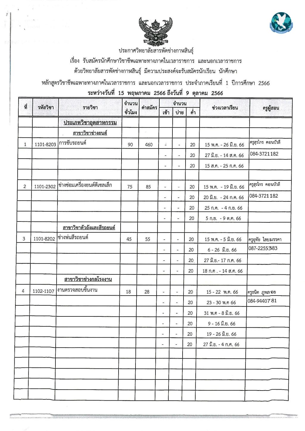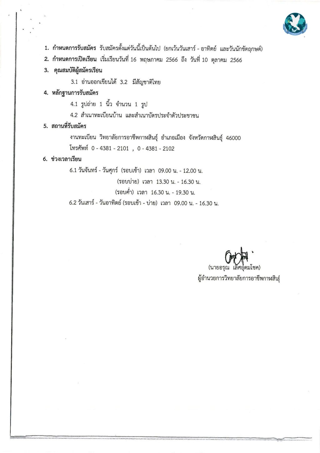 วิทยาลัยการอาชีพกาฬสินธุ์ ประกาศรับสมัครนักศึกษาวิชาชีพเฉพาะทาง (ระยะสั้น) ทั้งในเวลาราชการ และนอกเวลาราชการ ประจำภาคเรียนที่ 1 ปีการศึกษา 2566 ระหว่างวันที่ 15 พ.ค. – 9 ต.ค. 2566 โดยสามารถสอบถามข้อมูลเพิ่มเติมได้ที่ 043812101 043812102 หรือดาวน์โหลดรายละเอียดได้ที่เว็บไซต์ www.ksicec.ac.th