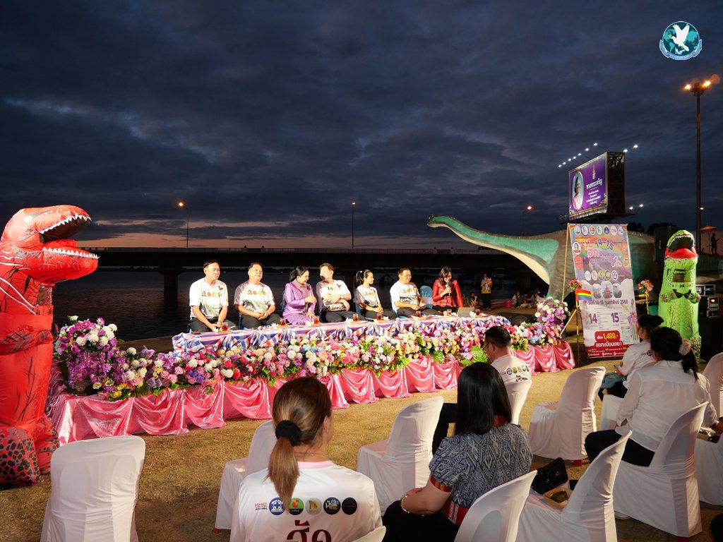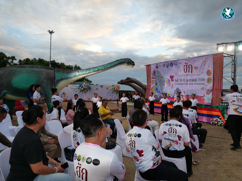 ที่ลานไดโนเสาร์ จุดชมวิวสะพานเทพสุดา เขื่อนลำปาว ต.โนนบุรี อ.สหัสขันธ์ จ.กาฬสินธุ์ นายธนภัทร ณ ระนอง รองผู้ว่าราชการจังหวัดกาฬสินธุ์ เป็นประธานในงานแถลงข่าวกิจกรรม “ฮักข้ามสะพาน สมรส รักเท่าเทียม” พร้อมด้วย น.ส.แววตา นระทัด นายอำเภอสหัสขันธ์ นางวิไลพร นิพัฒน์ รองนายกองค์การบริหารส่วนจังหวัดกาฬสินธุ์ นายหาญ อัศวภูมิ นายกเทศมนตรีตำบลหนองบัว นายบุญมี แก่นนาคำ นายกเทศมนตรีตำบลโนนบุรี แขกผู้มีเกียรติและสื่อมวลชน โดยมี ดร.วัชรพงศ์ ชาวสามทอง นายกสมาคมส่งเสริมธุรกิจการท่องเที่ยวจังหวัดกาฬสินธุ์ น.ส.ชนิดา ตั้งเทวนนท์ ประธานสภาอุตสาหกรรมท่องเที่ยวจังหวัดกาฬสินธุ์ และคณะกรรมการในนามเจ้าภาพจัดงานให้การต้อนรับ
