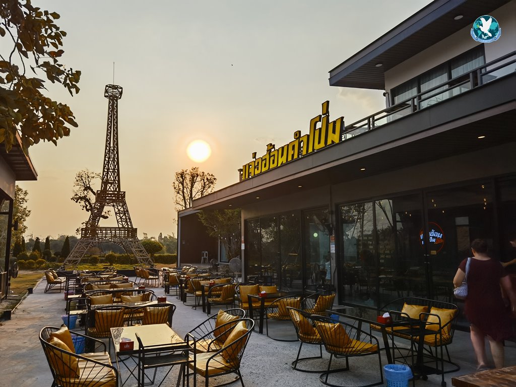 โดยยังพบว่านักท่องเที่ยวหรือลูกค้าที่เดินทางมารับประทานแจ่วฮ้อน อาหารและเครื่องดื่มที่ร้านแจ่วฮ้อนคำโป่ม ส่วนหนึ่งจะนั่งชิวยาวๆ จนถึงช่วงเย็น เพื่อรอชมความสวยงามของหอไอเฟล ขนาดความสูง 10 เมตร ประดับไฟสวยงาม ที่จำลองมาจากหอไอเฟล Eiffel Tower แลนด์มาร์คแห่งปารีส ฝรั่งเศส เพื่อถ่ายภาพเช็คอินกับหอไอเฟลอีกด้วย