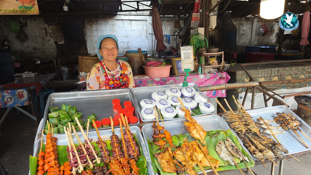 คุณแม่สมบัติ อายุ 57 ปี บอกว่า ขายส้มตำอยู่ที่นี่มา 20 กว่าปีแล้ว โดยซื้อปลาร้าจากตลาดสดมาต้มเอง ปรุงเอง เป็นสูตรเฉพาะ เมนูส้มตำที่ร้านก็หลากหลาย ส่วนมากลูกค้าจะชอบสั่งตำซั่ว ตำป่า ตำไทย มากที่สุด ก็ขอฝากให้ลูกค้าลองมาอุดหนุนชิมรสชาติน้ำปลาร้าต้มสุกที่ปรุงเองเป็นสูตรพิเศษของทางร้านได้ทุกวัน ตั้งแต่เวลา 06.00 น. เป็นต้นไป