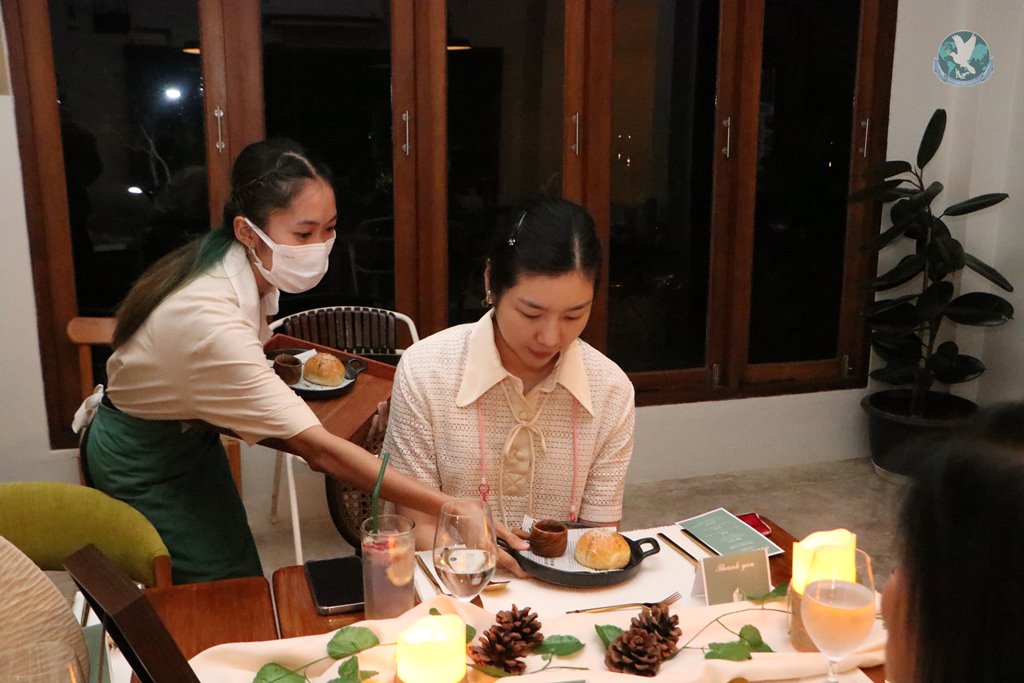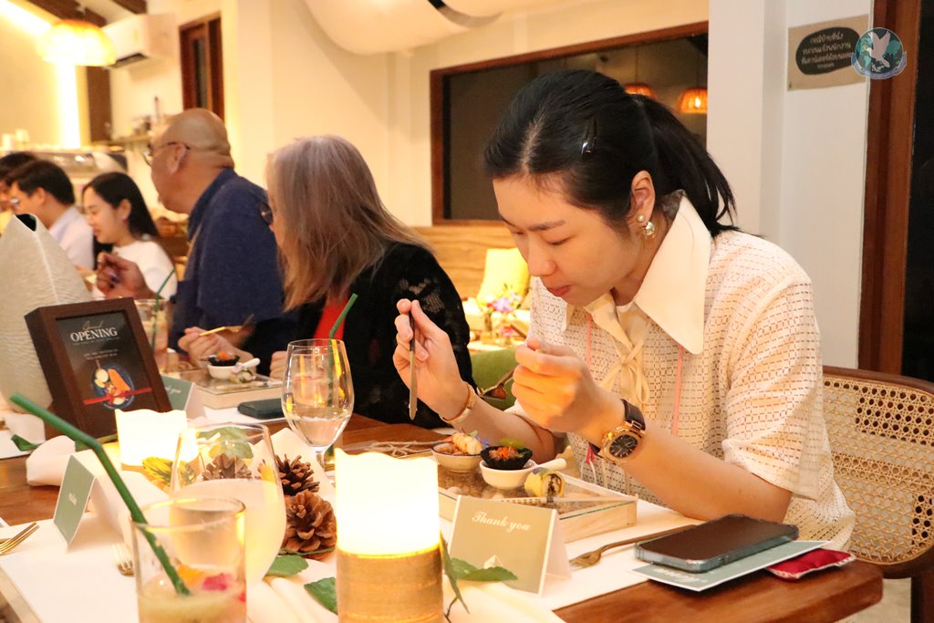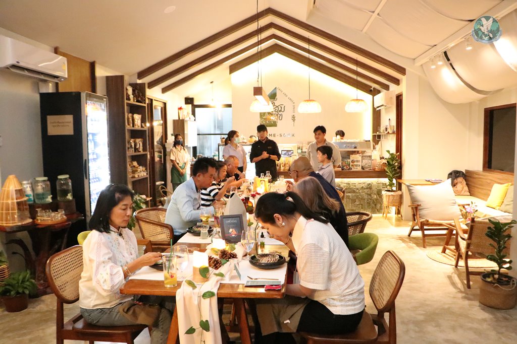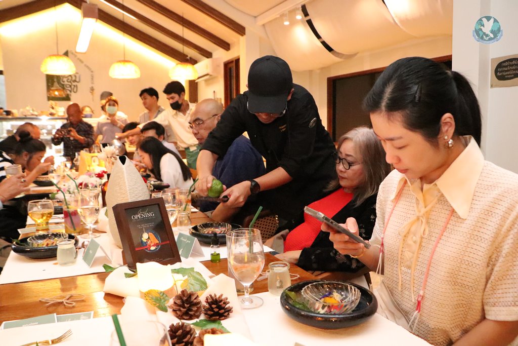ด้านคุณเฟิร์น น.ส.วทันยา ชาวสามทอง เจ้าของร้านโฮมสุขคาเฟ่ กล่าวว่า วันนี้โฮมสุขคาเฟ่ร่วมกับเชฟทีม ได้จัดงาน Chef table ขึ้นมา เพราะอยากนำเสนออาหารไทยในรูปแบบใหม่ให้ลูกค้าทุกท่านได้ลองได้ทานดู เป็นอาหารไทยโมเดิร์น และนำมาตกแต่งลงจานในรูปแบบใหม่ ใส่ดอกไม้ที่สามารถทานได้ ซึ่งเป็นคอนเซปของร้านเรา ที่อยากให้ทุกคนได้ลองประสบการณ์ใหม่ ๆ โดยเราได้ทำสวนเกษตรอยู่แล้ว มีการปลูกพืชผัก เลี้ยงไก่ เลี้ยงปลา อย่างเมนูหนึ่งในวันนี้เป็นเมนูต้มไก่บ้าน ก็ได้ใช้ไก่อารมณ์ดีที่ทางวนเกษตรบ้านโฮมเราเลี้ยงไว้เอง ผัก ดอกไม้ ก็มาจากสวนของเรา ซึ่งปลูกเองปราศจากการใช้สารเคมี