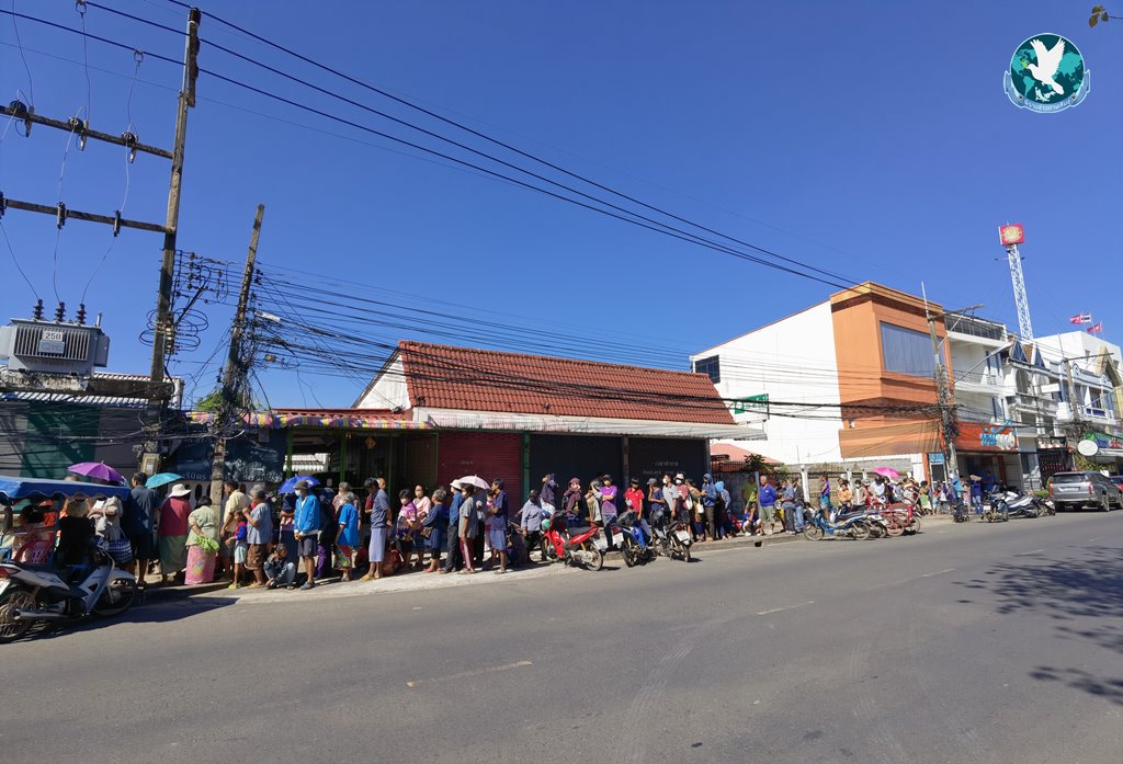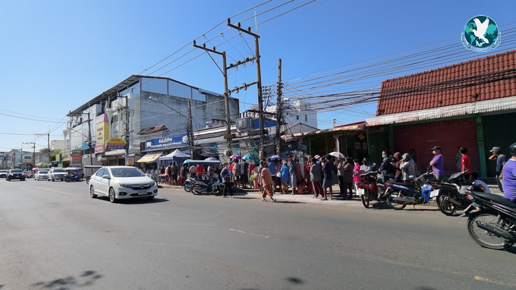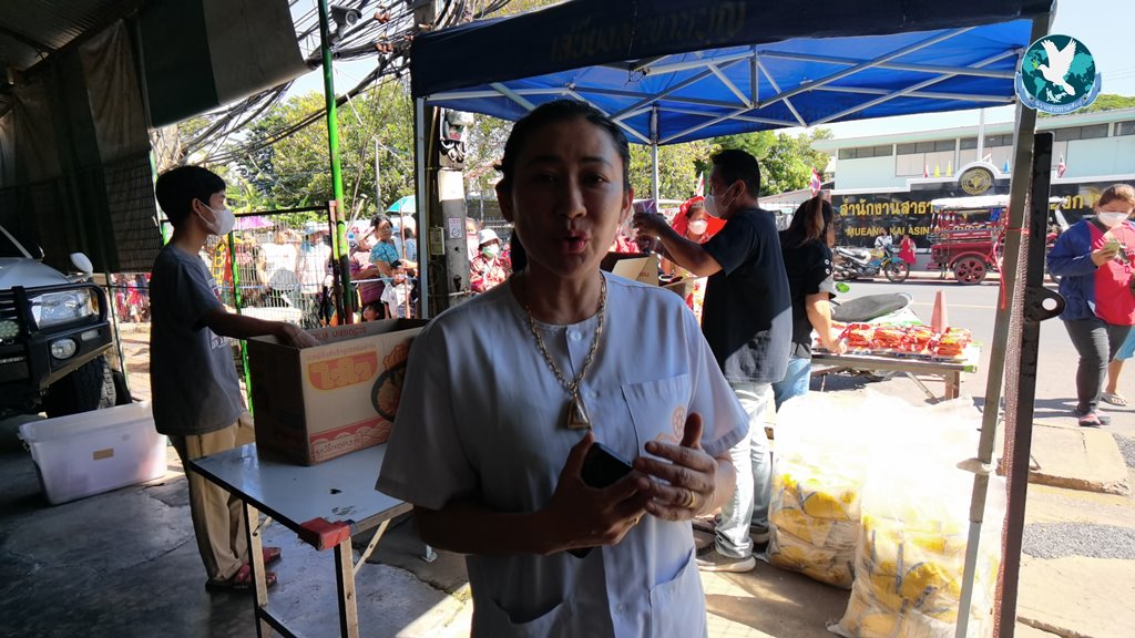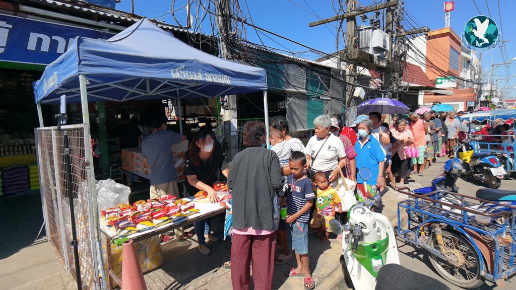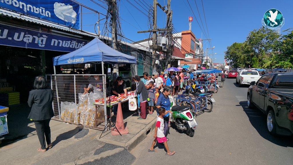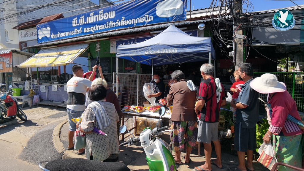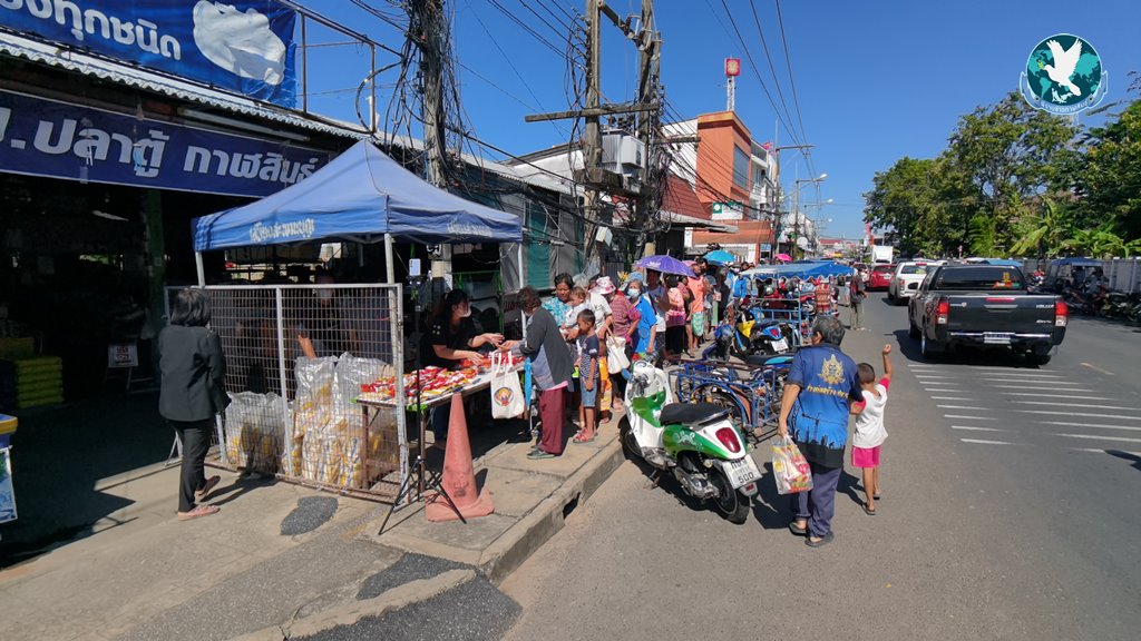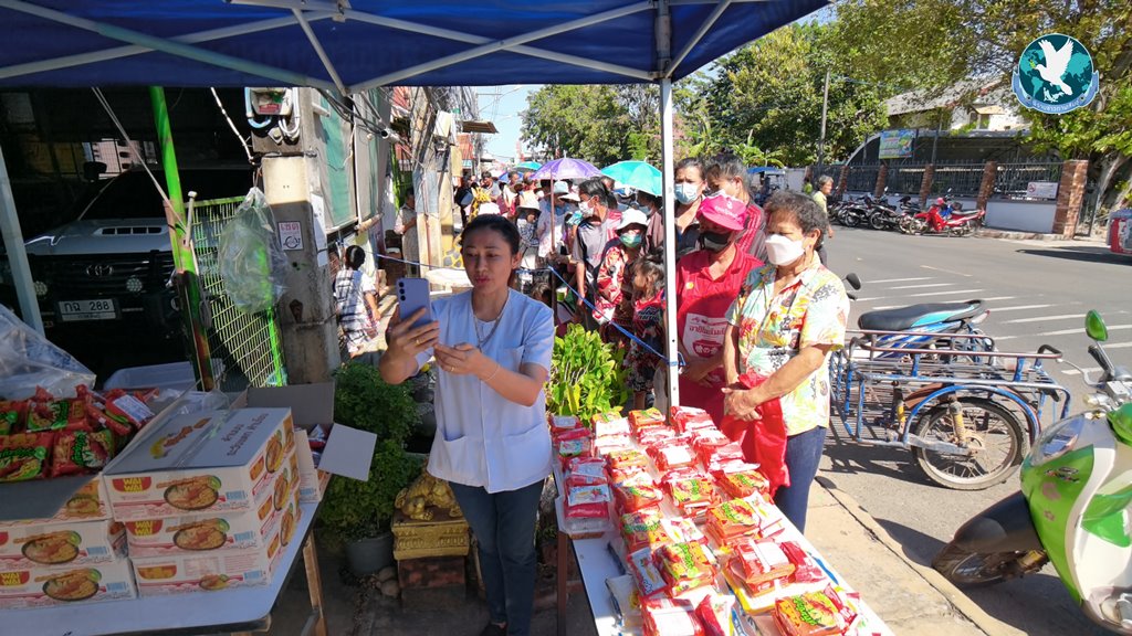 คุณปุญญิสา ณ กาฬสินธุ์ ตัวแทนกลุ่มเสบียงสะพานบุญ ให้สัมภาษณ์ผู้สื่อข่าวว่า วันนี้กลุ่มเสบียงสะพานบุญและเพื่อนๆ ซึ่งโดยปกติวันพระที่ 3 ของทุกๆ เดือน เราจะมีการทำทานแจกข้าวสารอาหารแห้งอยู่เป็นประจำอยู่แล้ว แจกทั้งข้าวกล่อง ข้าวสาร อาหารแห้ง เริ่มทำมาตั้งแต่ก่อนจะมีการแพร่ระบาดของโควิด-19 และในช่วงที่โควิดแพร่ระบาดเราก็ทำแจกทุกวันด้วย แจกให้กับทุกคน โดยวันนี้เราเตรียมแจกไว้จำนวน 700 ชุด ใครมารับได้หมดจนกว่าของจะหมด แต่ถ้าท่านใดที่มาแล้วมากดไลท์กดแชร์ในเฟสบุ๊กแอน “ปุญญิสา ณ กาฬสินธุ์ (เสบียงบุญ)” แอนจะมีคูปองพิเศษให้ก็จะได้รับเพิ่มอีก 1 ชุด เพราะอยากจะให้ทุกท่านได้เห็นว่าในเฟสบุ๊กแอนจะมีแต่เรื่องราวของการทำบุญ อยากให้เห็นว่าการทำบุญเป็นสิ่งที่ง่ายเป็นสิ่งที่ดี เป็นสิ่งที่ทุกๆ คนควรทำ ส่วนที่ร้านของเราแห่งนี้ชื่อร้าน พี.พี.เพ็ทช็อพ ก็จำหน่ายอุปกรณ์และอาหารสัตว์เลี้ยงทุกชนิด ตั้งอยู่ตรงข้ามสำนักงานสาธารณสุขอำเภอเมืองกาฬสินธุ์