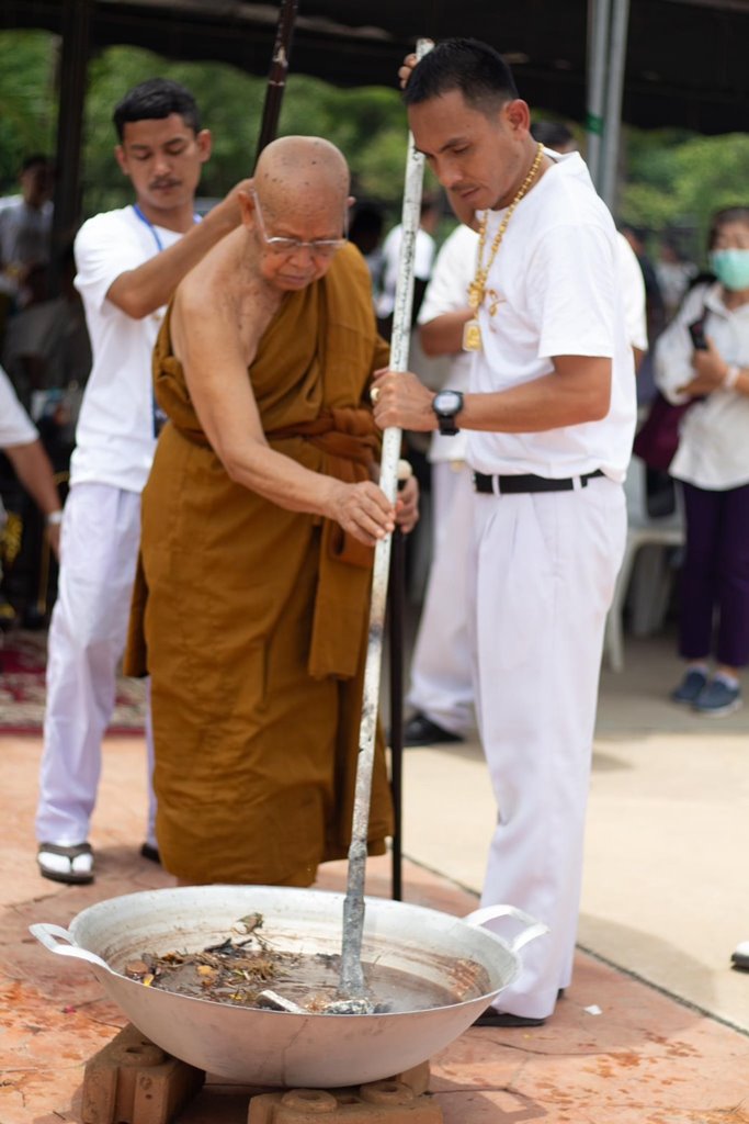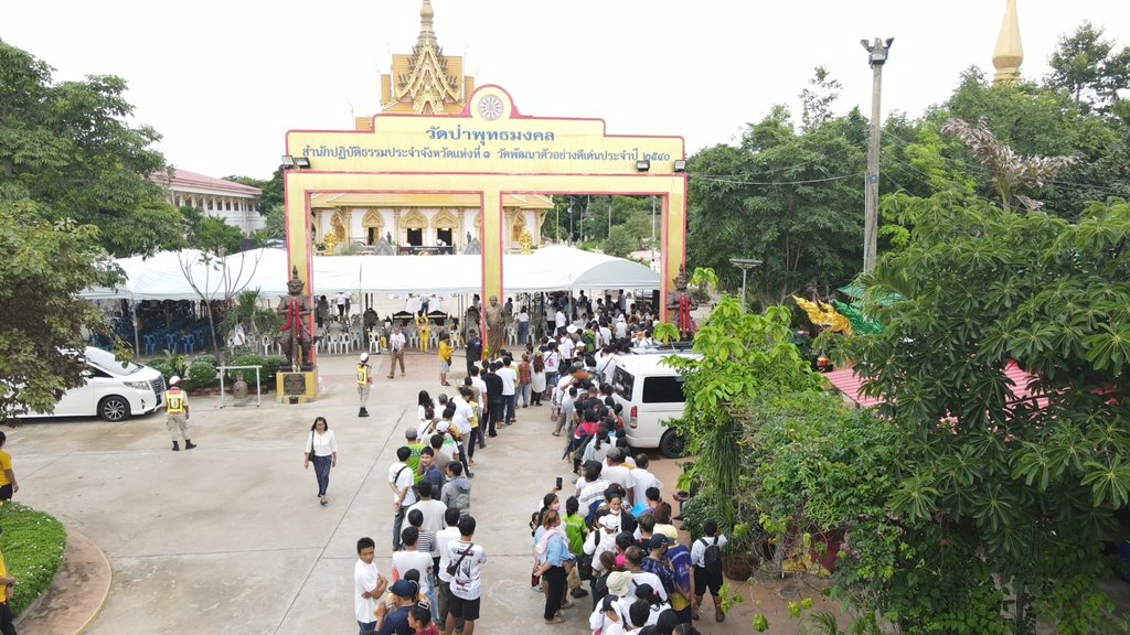 ในพิธีมีสาธุชนมารอรับพระแจกขวัญถุงนำฤกษ์เจริญพรตั้งแต่เวลาตี 1 ซึ่งเป็นวัตถุมงคลล้ำค่าทางจิตใจที่ผ่านพิธีแช่น้ำมนต์ ชุบว่านยาของหลวงปู่ พบว่ามีประชาชนจากทั่วทุกสารทิศต่อแถวรอยาวล้นออกมาจากวัด