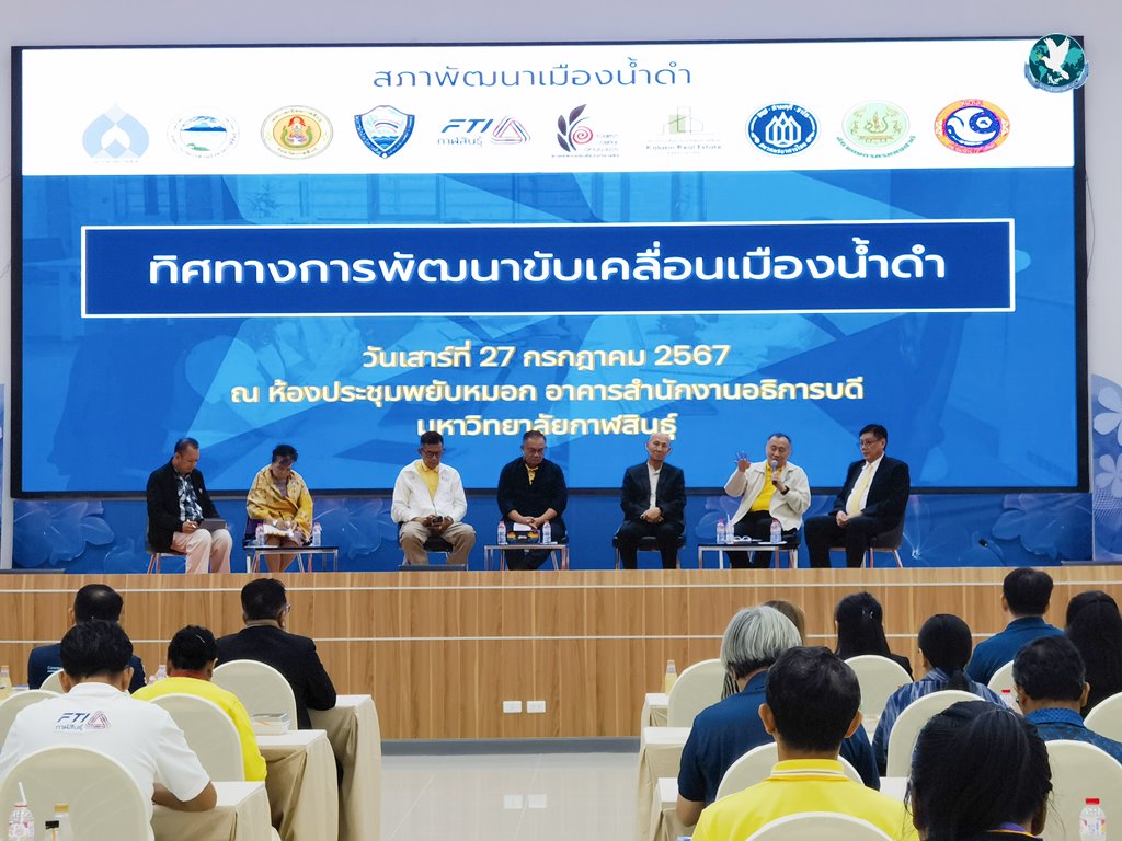 การจัดงานเสวนา “ทิศทางการพัฒนาขับเคลื่อนเมืองน้ำดำ” (Healthy Wellness) เป็นการร่วมมือกันของสภาพัฒนาเมืองน้ำดำ อันประกอบด้วย 10 องค์กร ได้แก่ องค์การบริการส่วนจังหวัดกาฬสินธุ์ มหาวิทยาลัยกาฬสินธุ์ เทศบาลเมืองกาฬสินธุ์ หอการค้าจังหวัดกาฬสินธุ์ สภาพอุตสาหกรรมจังหวัดกาฬสินธุ์ สภาอุตสาหกรรมการท่องเที่ยวจังหวัดกาฬสินธุ์ สมาคมธนาคารไทยจังหวัดกาฬสินธุ์ สมาคมนักข่าวกาฬสินธุ์ สมาคมอสังหาริมทรัพย์ และสภาเกษตรกรจังหวัดกาฬสินธุ์ โดยมีอาจารย์สุริยัน เหล่าสุอาภา รองประธานสภาอุตสาหกรรมภาคตะวันออกเฉียงเหนือ ด้านผังเมืองและนิคมอุตสาหกรรม เป็นวิทยากรบรรยายพิเศษ โดยบรรยายฉายฉากทัศน์ในหัวข้อ “โอกาสและความท้าทายในการพัฒนาเมืองน้ำดำ” หลังจากนั้นได้บรรยายในหัวข้อผังเมืองจังหวัด, ธรรมนูญเขื่อน+การท่องเที่ยว, BCG+การท่องเที่ยว, GEOpark+การท่องเที่ยว และ Sandbox เมืองกาฬสินธุ์ โดยมีนายวิรัช พิมพะนิตย์ สมาชิกสภาผู้แทนราษฎร กาฬสินธุ์ เขต 1 เข้าร่วมรับฟังและแสดงความคิดเห็น พร้อมผลักดันสนับสนุนนำโครงการในเวทีเสวนาส่งถึงรัฐบาลต่อไป