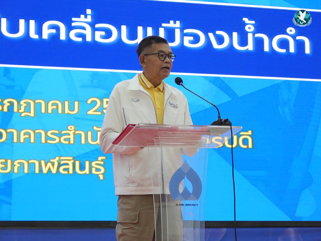 วันนี้ (27 กรกฎาคม 2567) เวลา 09.00 น. ที่ห้องประชุมพยับหมอก ชั้น 3 อาคารสำนักงานอธิการบดี มหาวิทยาลัยกาฬสินธุ์ นายสนั่น พงษ์อักษร ผู้ว่าราชการจังหวัดกาฬสินธุ์ เป็นประธานเปิดการเสวนา “ทิศทางการพัฒนาขับเคลื่อนเมืองน้ำดำ” (Healthy Wellness) เพื่อร่วมกันแลกเปลี่ยนความคิดเห็นที่เป็นประโยชน์ต่อการพัฒนาจังหวัดกาฬสินธุ์ ให้มีความเจริญก้าวหน้าเป็นรูปธรรมและยั่งยืน ทัดเทียมกับจังหวัดอื่นๆ ในภูมิภาคเดียวกัน โดยมีหัวหน้าส่วนราชการ องค์กรภาครัฐ องค์กรเอกชน ประชาชน และสื่อมวลชน เข้าร่วมการเสวนาฯ ในครั้งนี้
