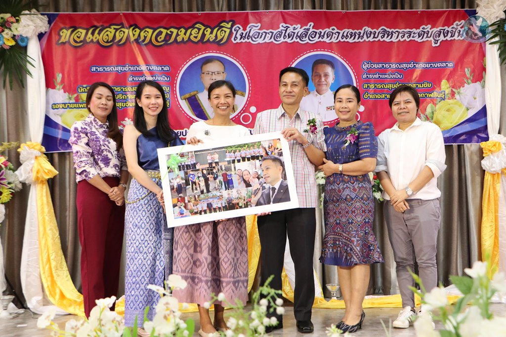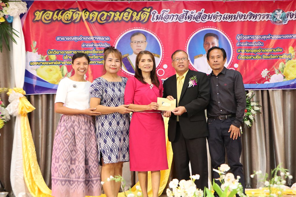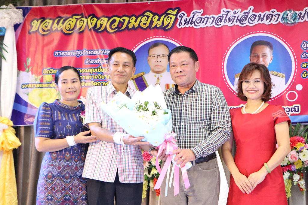 เมื่อวันที่ 4 ต.ค. 2565 ณ โรงแรมชาร์ลองบูทรีค นายสันติ จัตุพันธ์ นายอำเภอยางตลาด นายอำเภอแหวนเพชรคนล่าสุดของจังหวัดกาฬสินธุ์ เป็นประธานในพิธีการจัดงานแสดงความยินดีในโอกาสผู้บริหารได้เลื่อนตำแหน่งระดับสูงขึ้น จำนวน 2 ท่าน ประกอบด้วย นายประสิทธิชัย กัลยาสนธิ สาธารณสุขอำเภอยางตลาด ดำรงตำแหน่งนักวิชาการสาธารณสุขเชี่ยวชาญ (ด้านบริการทางวิชาการ) ได้เลื่อนตำแหน่งเป็นรองนายแพทย์สาธารณสุขจังหวัดกาฬสินธุ์ และนายสุลักษณ์ เสนาวุฒิ ผู้ช่วยสาธารณสุขอำเภอยางตลาด ได้เลื่อนตำแหน่งเป็นสาธารณสุขอำเภอสามชัย จังหวัดกาฬสินธุ์ โดยมีหัวหน้าส่วนราชการที่ทำงานด้านสาธารณสุขอำเภอยางตลาด และเจ๊นาง “วันเพ็ญ เศรษฐรักษา” นักการเมืองหญิงคนเก่งของอำเภอยางตลาดเข้าร่วมแสดงความยินดีในครั้งนี้ด้วย