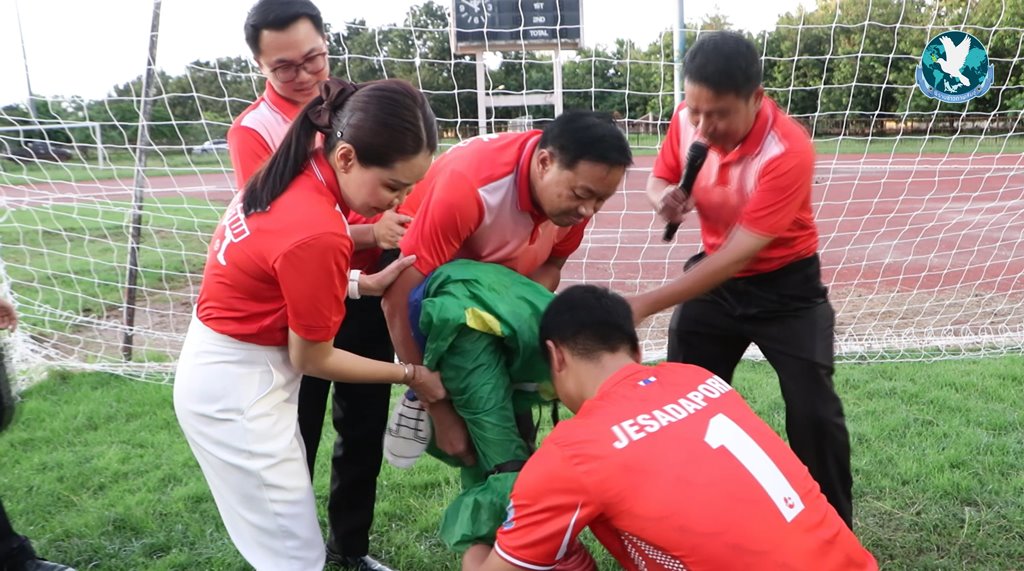 ทิ้งท้ายงานแถลงข่าวครั้งนี้ด้วย สีสันเรียกเสียงฮา ที่ท่านผู้ว่าราชการจังหวัดกาฬสินธุ์ ลงทุนใส่ชุดมาสคอทไดโนเสาร์พันธุ์มินิโมเคอร์เซอร์ ภูน้อยเอนซิส นักวิ่งตัวจิ๋วจากแหล่งภูน้อย ตัวแรกของกาฬสินธุ์ เพื่อแสดงความเป็นเอกลักษณ์ของจังหวัดกาฬสินธุ์ เพื่อเตะจุดโทษแข่งกับท่านนายก อบจ.กาฬสินธุ์ แต่พิธีกรดันลืมชาร์ทแบตเตอรี่เครื่องเป่าลมมาด้วย จึงทำให้ชุดไดโนเสาร์ที่ท่านผู้ว่าฯ ใส่ไม่สะดุดตา และยังเกะกะ แต่ด้วยท่านผู้ว่าฯ ซ่อมมาบ่อย ชุดไดโนเสาร์ก็ไม่เป็นอุปสรรค ทำให้เตะเข้าประตูได้อย่างสวยงาม สมกับได้รับฉายาว่าผู้ว่าไดโนเสาร์ของแท้