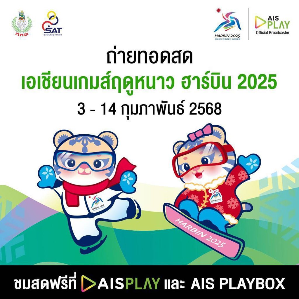 AIS PLAY ร่วมกับ การกีฬาแห่งประเทศไทย เตรียมถ่ายทอดสดมหกรรมกีฬาเอเชียนเกมส์ฤดูหนาว ครั้งที่ 9 ฮาร์บิน 2025 ที่เมืองฮาร์บิน สาธารณรัฐประชาชนจีน ในฐานะ Official Broadcaster ผู้ถ่ายทอดสดอย่างเป็นทางการ ให้ลูกค้าและคนไทยทุกเครือข่ายได้รับชมแบบจุใจ 4 ช่อง พร้อมบรรยายไทย ชมสดมากที่สุดที่เดียวเท่านั้น ชวนคนไทยร่วมส่งแรงใจเชียร์ทัพนักกีฬาไทยคว้าเหรียญรางวัลในการแข่งขัน เริ่มตั้งแต่วันที่ 3 – 14 กุมภาพันธ์ 2568 และพิธีเปิดการแข่งขันสุดยิ่งใหญ่ในวันที่ 7 กุมภาพันธ์นี้ พร้อมจัดเต็มไฮไลท์และรีรันผ่าน AIS PLAY ทุกช่องทาง ทั้งบนแอปพลิเคชัน AIS PLAY, กล่อง AIS PLAYBOX, Website https://aisplay.ais.co.th/portal, Smart TV, Apple และ 3BB GIGA TV